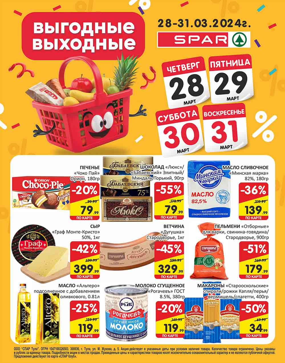 Подробную информацию об правилах, наличии товаров, адресах и скидках узнавайте в магазинах или по тел. 8 800 500 13 29 и на сайте: myspar.ru