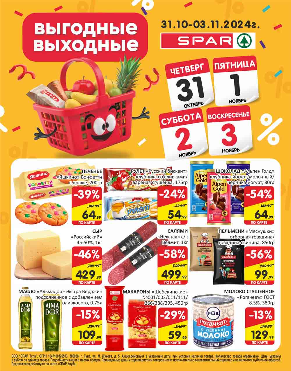 Подробную информацию об правилах, наличии товаров, адресах и скидках узнавайте в магазинах или по тел. 8 800 500 13 29 и на сайте: myspar.ru