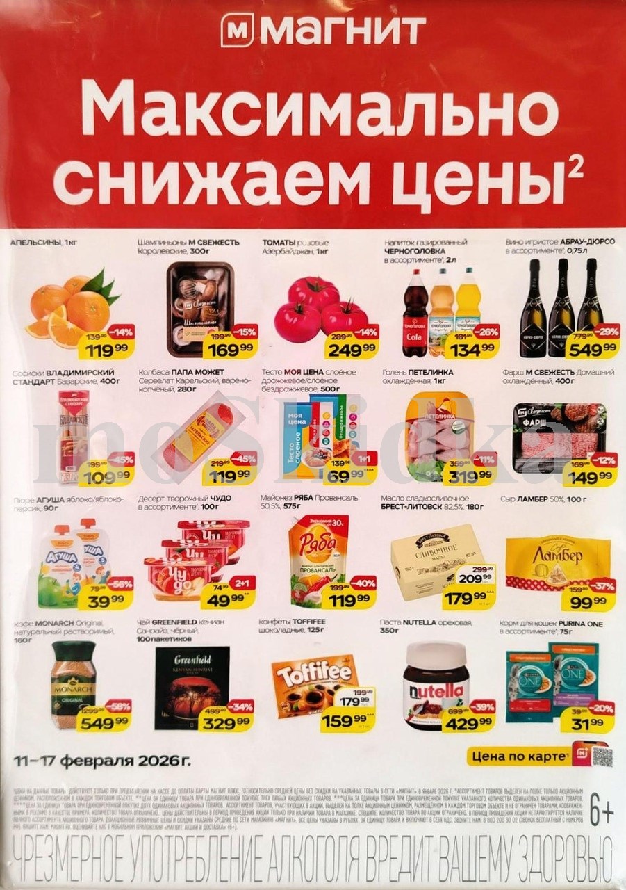 Смотрите еженедельный, новый каталог Магнит и не переплачивайте. Сегодня вас ждут ряд интересных предложений, привлекательных цен, акций и скидок. На страницах каталога Магнит вы найдете все свои любимые товары, которые сейчас предлагаются в супермаркете. Количество товара ограничено и действительно при наличии. Предложение «Цена по карте» действует при предъявлении на кассе "карты лояльности", до оплаты. До-акционные цены и размер скидки в каталоге указаны средние по сети. Цены по акции Магнит действуют в городах: Москва, Балашиха, Химки, Подольск, Королев, Мытищи, Люберцы, Электросталь, Коломна, Одинцово, Железнодорожный, Серпухов, Орехово-Зуево, Красногорск, Щелково, Сергиев Посад, Пушкино, Жуковский, Ногинск, Раменское и многих других населенных пунктах Московского региона.