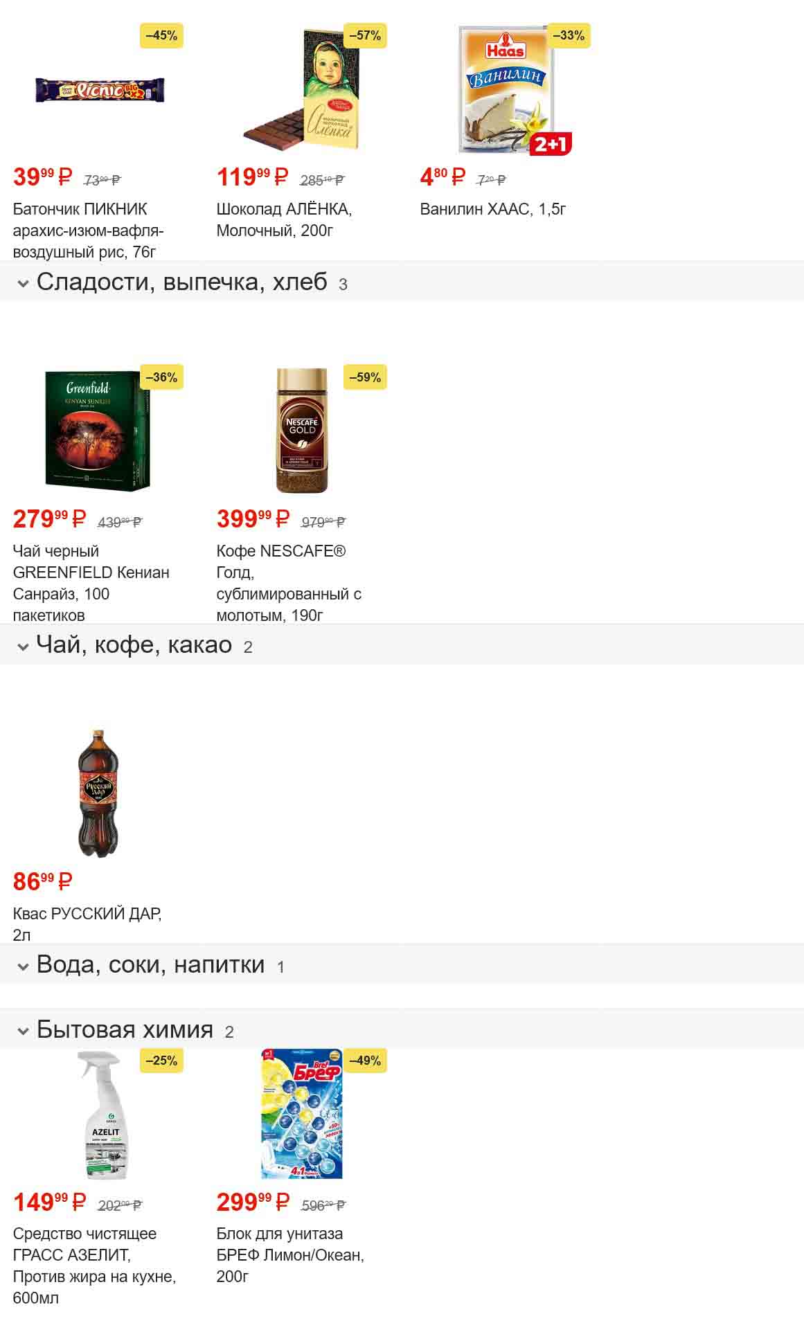 Смотрите еженедельный, новый каталог Магнит и не переплачивайте. Сегодня Вас ждут ряд интересных предложений, привлекательных цен, акций и скидок. Смотрите новый каталог «Магнит гипермаркет» онлайн. Количество товара ограничено и действительно при наличии. Дополнительная скидка на товар указанный в каталоге не распространяется. Цены по акции Магнит гипермаркет действуют в городах: Москва, Балашиха, Химки, Подольск, Королев, Мытищи, Люберцы, Электросталь, Коломна, Одинцово, Железнодорожный, Серпухов, Орехово-Зуево, Красногорск, Щелково, Сергиев Посад, Пушкино, Жуковский, Ногинск, Раменское и многих других населенных пунктах Московского региона.