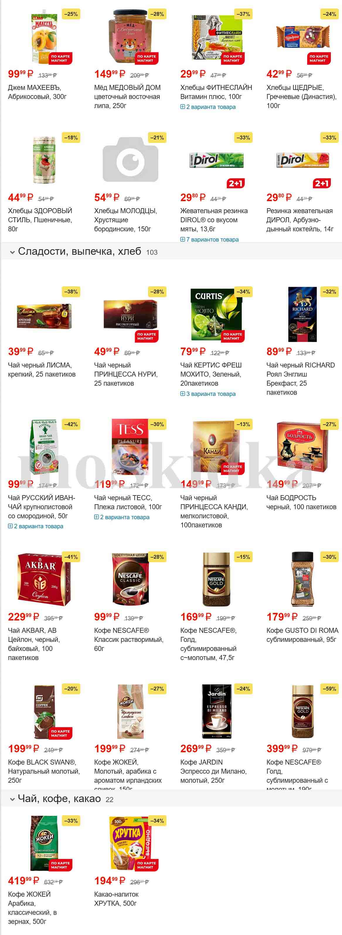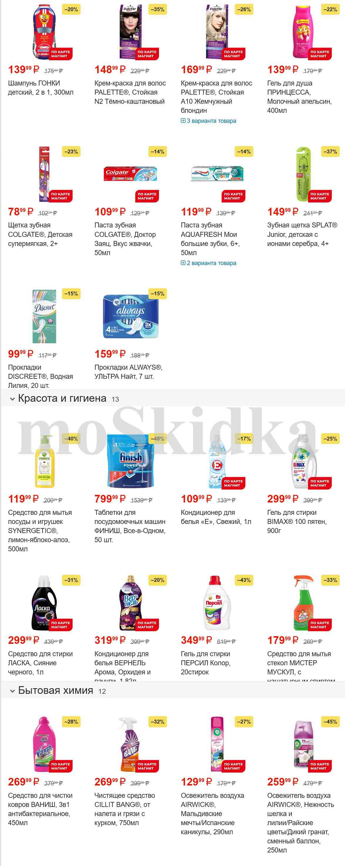 Смотрите еженедельный, новый каталог Магнит и не переплачивайте. Сегодня вас ждут ряд интересных предложений, привлекательных цен, акций и скидок. На страницах каталога Магнит вы найдете все свои любимые товары, которые сейчас предлагаются в супермаркете. Количество товара ограничено и действительно при наличии. Предложение «Цена по карте» действует при предъявлении на кассе "карты лояльности", до оплаты. До-акционные цены и размер скидки в каталоге указаны средние по сети. Цены по акции Магнит действуют в городах: Москва, Балашиха, Химки, Подольск, Королев, Мытищи, Люберцы, Электросталь, Коломна, Одинцово, Железнодорожный, Серпухов, Орехово-Зуево, Красногорск, Щелково, Сергиев Посад, Пушкино, Жуковский, Ногинск, Раменское и многих других населенных пунктах Московского региона.