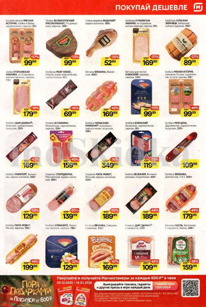 Смотрите еженедельный, новый каталог Магнит и не переплачивайте. Сегодня вас ждут ряд интересных предложений, привлекательных цен, акций и скидок. На страницах каталога Магнит вы найдете все свои любимые товары, которые сейчас предлагаются в супермаркете. Количество товара ограничено и действительно при наличии. Предложение «Цена по карте» действует при предъявлении на кассе "карты лояльности", до оплаты. До-акционные цены и размер скидки в каталоге указаны средние по сети. Цены по акции Магнит действуют в городах: Москва, Балашиха, Химки, Подольск, Королев, Мытищи, Люберцы, Электросталь, Коломна, Одинцово, Железнодорожный, Серпухов, Орехово-Зуево, Красногорск, Щелково, Сергиев Посад, Пушкино, Жуковский, Ногинск, Раменское и многих других населенных пунктах Московского региона.
