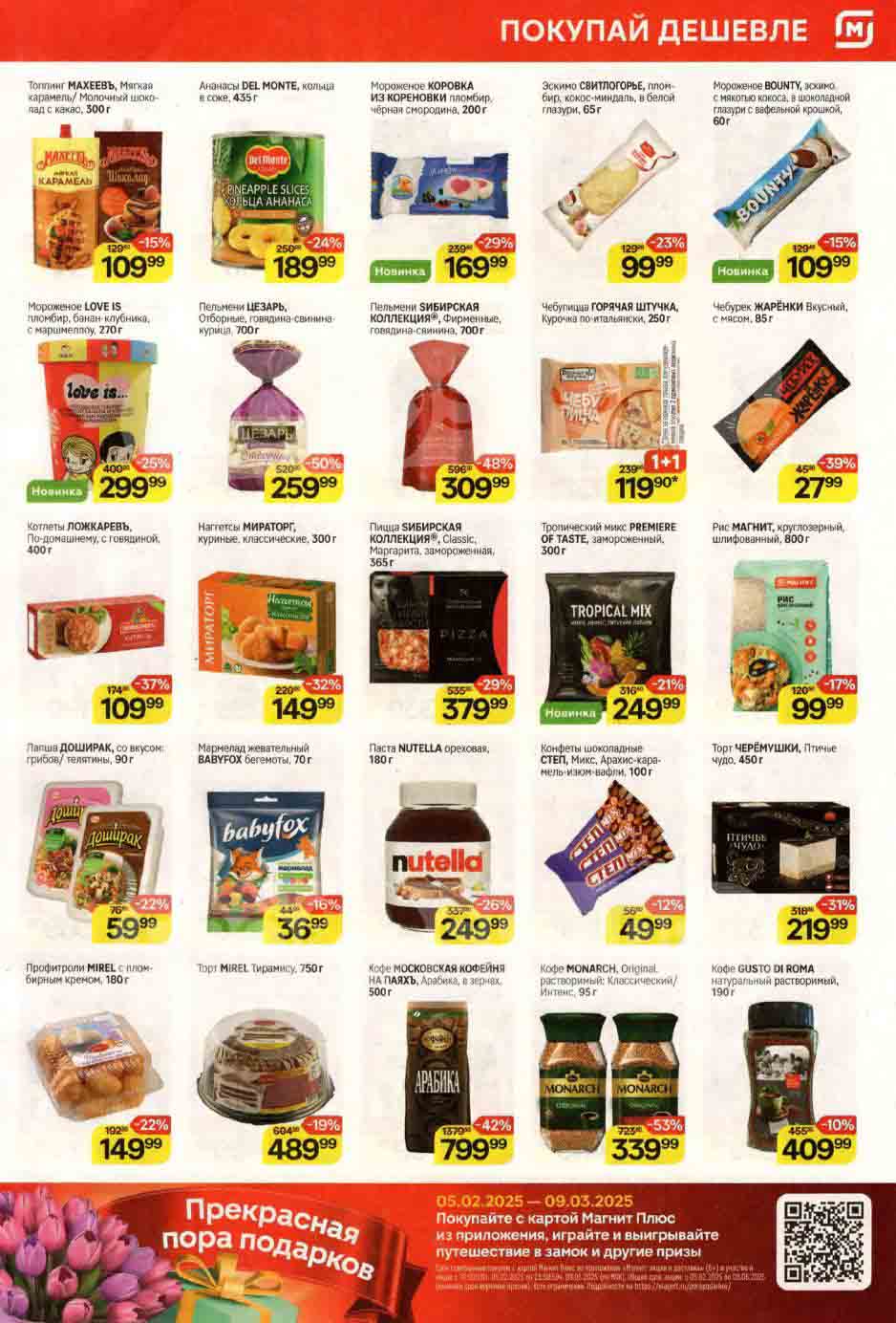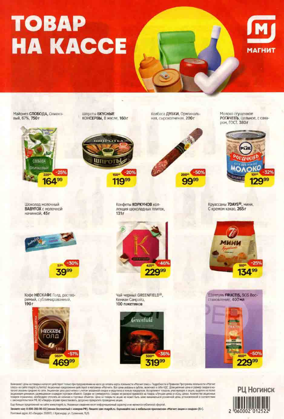 Смотрите еженедельный, новый каталог Магнит и не переплачивайте. Сегодня вас ждут ряд интересных предложений, привлекательных цен, акций и скидок. На страницах каталога Магнит вы найдете все свои любимые товары, которые сейчас предлагаются в супермаркете. Количество товара ограничено и действительно при наличии. Предложение «Цена по карте» действует при предъявлении на кассе "карты лояльности", до оплаты. До-акционные цены и размер скидки в каталоге указаны средние по сети. Цены по акции Магнит действуют в городах: Москва, Балашиха, Химки, Подольск, Королев, Мытищи, Люберцы, Электросталь, Коломна, Одинцово, Железнодорожный, Серпухов, Орехово-Зуево, Красногорск, Щелково, Сергиев Посад, Пушкино, Жуковский, Ногинск, Раменское и многих других населенных пунктах Московского региона.