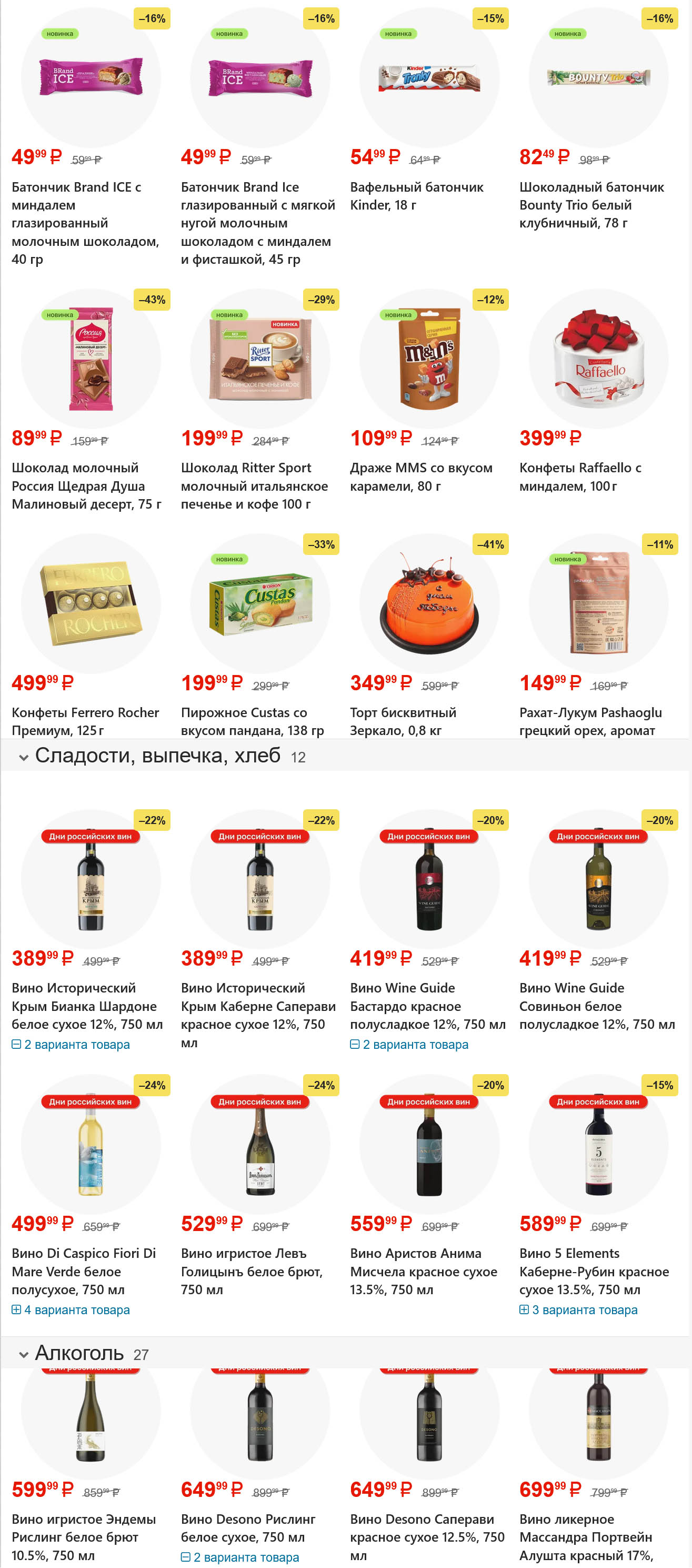 моСкидка.ру — независимый информационный сервис. Мы публикуем обзор каталога для вашего удобства, опираясь на данные официальных источников и СМИ, но не являемся организатором акций. Окончательная цена, а также наличие товара определяются в момент покупки в кассовой зоне конкретного магазина. Условия акций могут быть изменены ритейлером без предварительного уведомления.