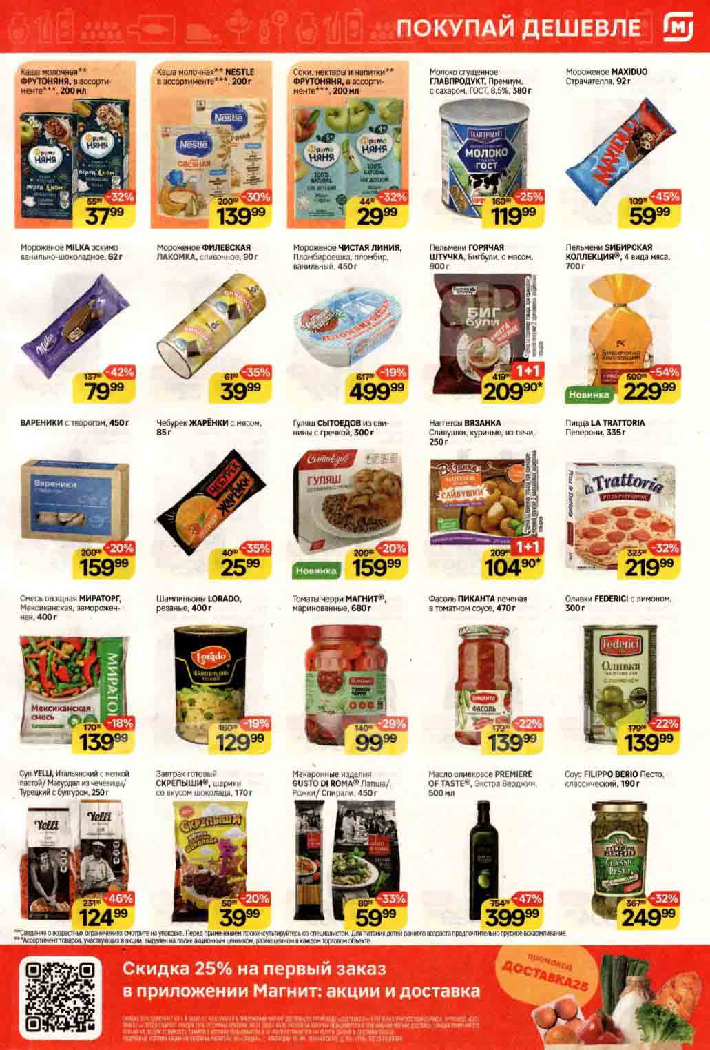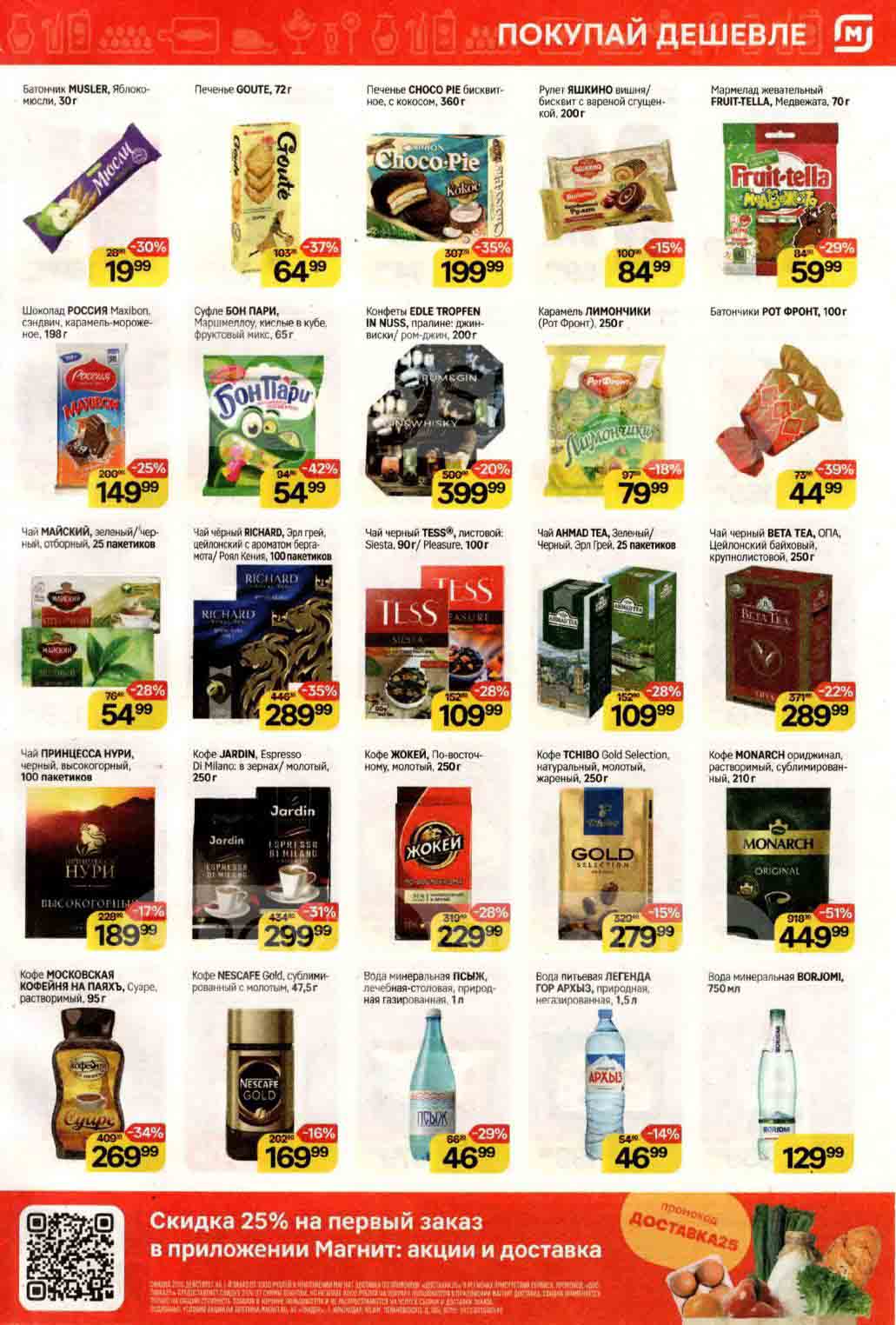 В акции участвуют различные товары, включая кофе NESCAFE (-35%), конфеты ДОБРЯНКА, сухие корма для животных PERFECT FIT (-35%) и многое другие.