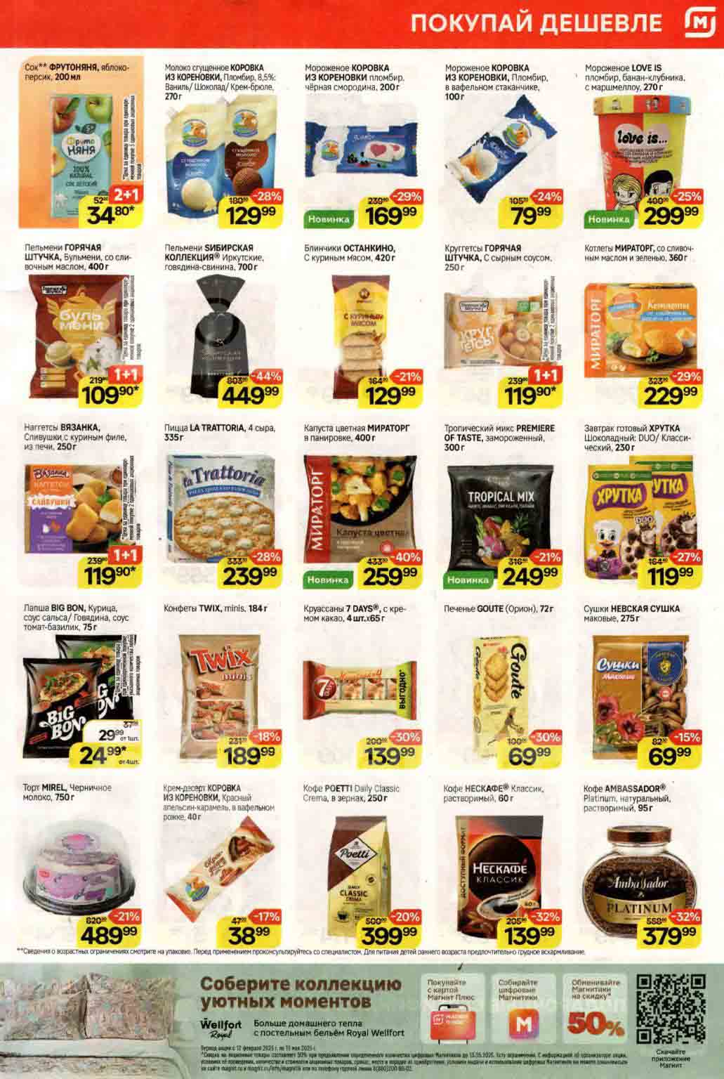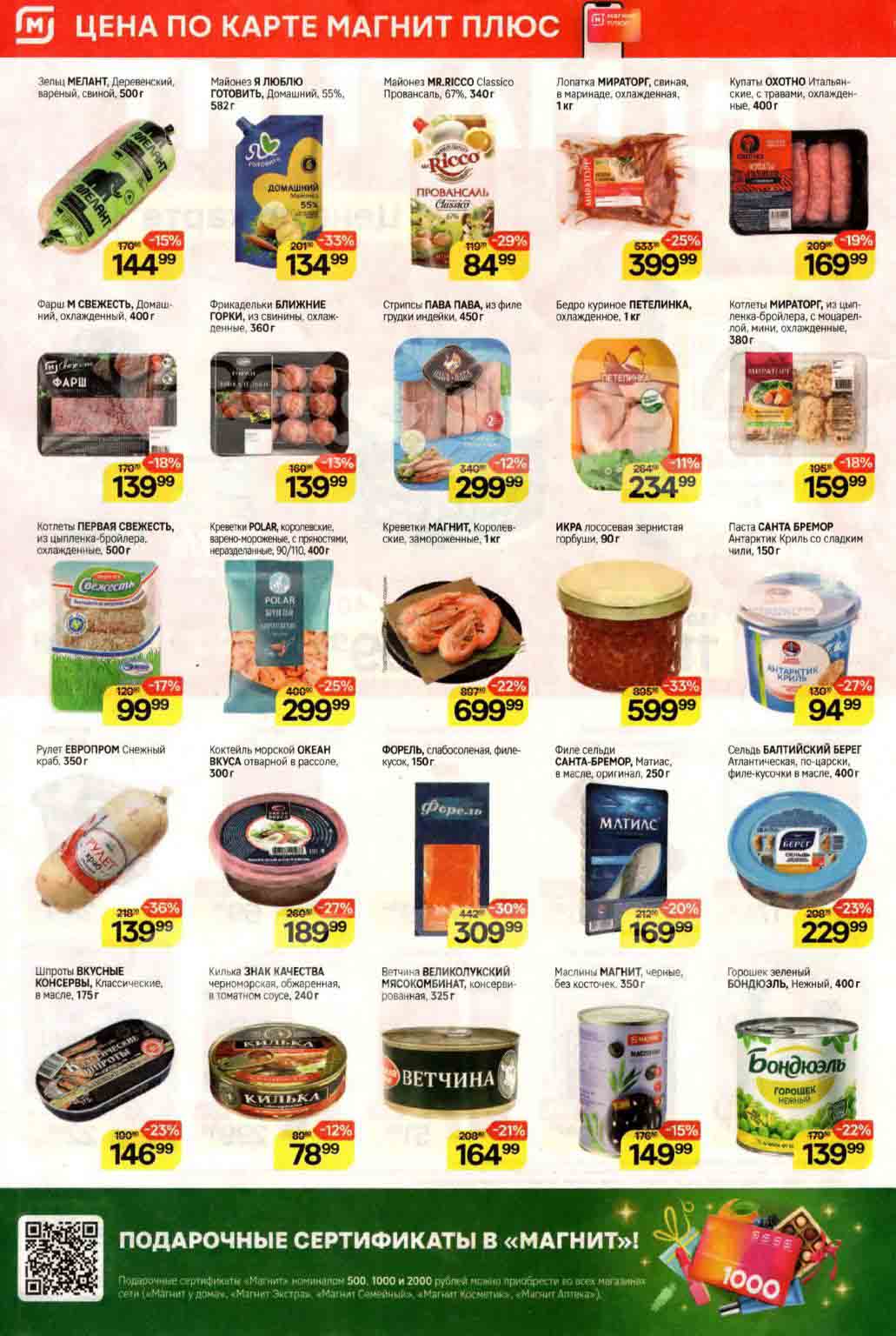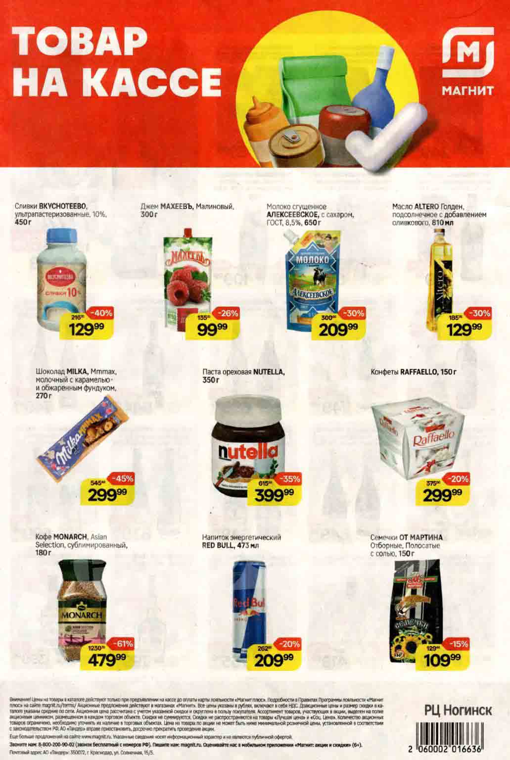 Смотрите еженедельный, новый каталог Магнит и не переплачивайте. Сегодня вас ждут ряд интересных предложений, привлекательных цен, акций и скидок. На страницах каталога Магнит вы найдете все свои любимые товары, которые сейчас предлагаются в супермаркете. Количество товара ограничено и действительно при наличии. Предложение «Цена по карте» действует при предъявлении на кассе "карты лояльности", до оплаты. До-акционные цены и размер скидки в каталоге указаны средние по сети. Цены по акции Магнит действуют в городах: Москва, Балашиха, Химки, Подольск, Королев, Мытищи, Люберцы, Электросталь, Коломна, Одинцово, Железнодорожный, Серпухов, Орехово-Зуево, Красногорск, Щелково, Сергиев Посад, Пушкино, Жуковский, Ногинск, Раменское и многих других населенных пунктах Московского региона.