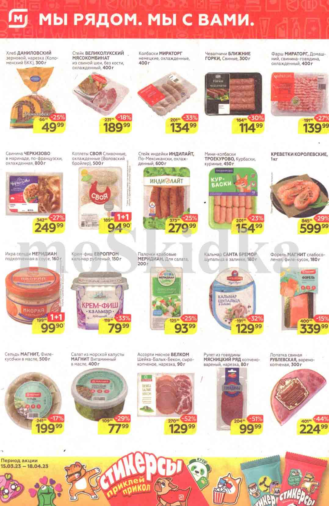 Смотрите еженедельный, новый каталог Магнит и не переплачивайте. Сегодня вас ждут ряд интересных предложений, привлекательных цен, акций и скидок. На страницах каталога Магнит вы найдете все свои любимые товары, которые сейчас предлагаются в супермаркете. Количество товара ограничено и действительно при наличии. Предложение «Цена по карте» действует при предъявлении на кассе "карты лояльности", до оплаты. До-акционные цены и размер скидки в каталоге указаны средние по сети. Цены по акции Магнит действуют в городах: Москва, Балашиха, Химки, Подольск, Королев, Мытищи, Люберцы, Электросталь, Коломна, Одинцово, Железнодорожный, Серпухов, Орехово-Зуево, Красногорск, Щелково, Сергиев Посад, Пушкино, Жуковский, Ногинск, Раменское и многих других населенных пунктах Московского региона.