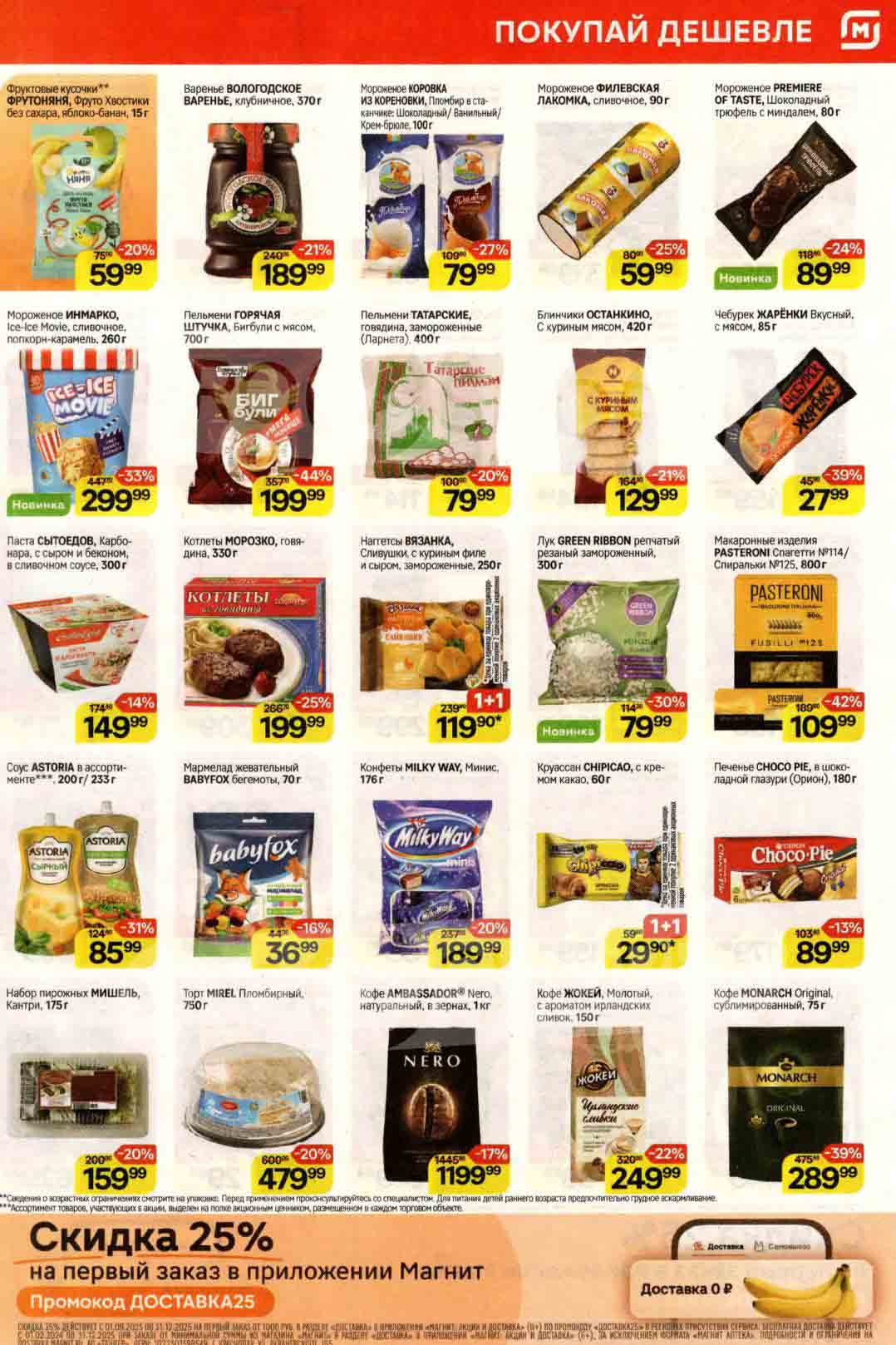 Смотрите еженедельный, новый каталог Магнит и не переплачивайте. Сегодня вас ждут ряд интересных предложений, привлекательных цен, акций и скидок. На страницах каталога Магнит вы найдете все свои любимые товары, которые сейчас предлагаются в супермаркете. Количество товара ограничено и действительно при наличии. Предложение «Цена по карте» действует при предъявлении на кассе "карты лояльности", до оплаты. До-акционные цены и размер скидки в каталоге указаны средние по сети. Цены по акции Магнит действуют в городах: Москва, Балашиха, Химки, Подольск, Королев, Мытищи, Люберцы, Электросталь, Коломна, Одинцово, Железнодорожный, Серпухов, Орехово-Зуево, Красногорск, Щелково, Сергиев Посад, Пушкино, Жуковский, Ногинск, Раменское и многих других населенных пунктах Московского региона.