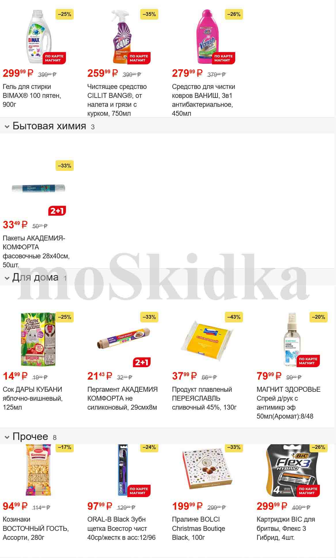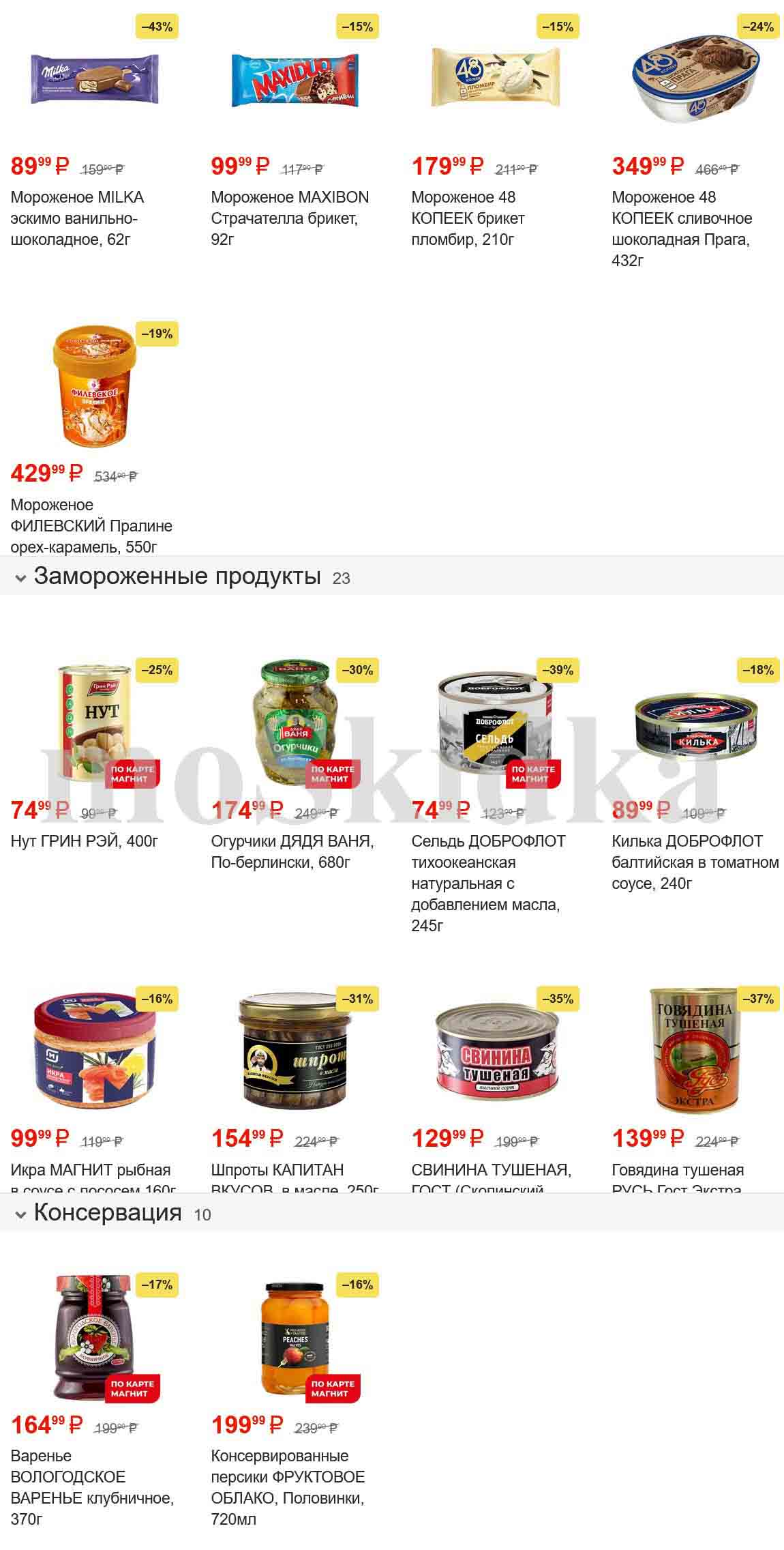 Смотрите еженедельный, новый каталог Магнит и не переплачивайте. Сегодня вас ждут ряд интересных предложений, привлекательных цен, акций и скидок. На страницах каталога Магнит вы найдете все свои любимые товары, которые сейчас предлагаются в супермаркете. Количество товара ограничено и действительно при наличии. Предложение «Цена по карте» действует при предъявлении на кассе "карты лояльности", до оплаты. До-акционные цены и размер скидки в каталоге указаны средние по сети. Цены по акции Магнит действуют в городах: Москва, Балашиха, Химки, Подольск, Королев, Мытищи, Люберцы, Электросталь, Коломна, Одинцово, Железнодорожный, Серпухов, Орехово-Зуево, Красногорск, Щелково, Сергиев Посад, Пушкино, Жуковский, Ногинск, Раменское и многих других населенных пунктах Московского региона.