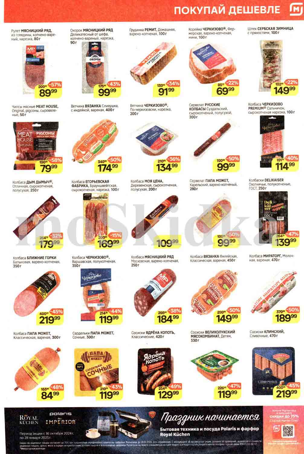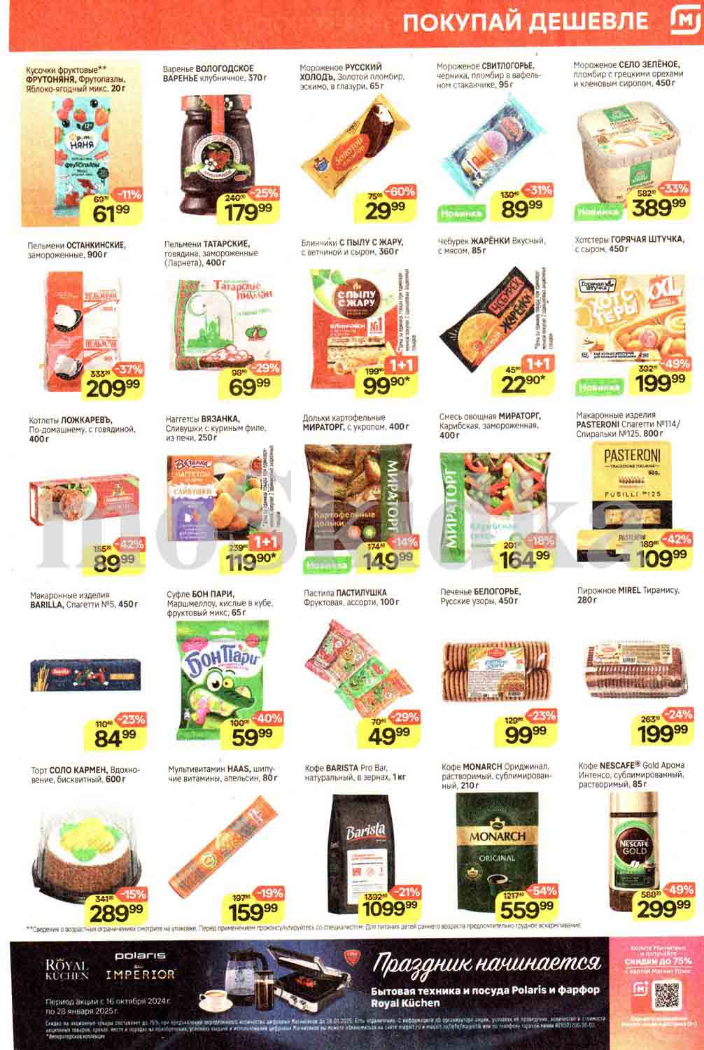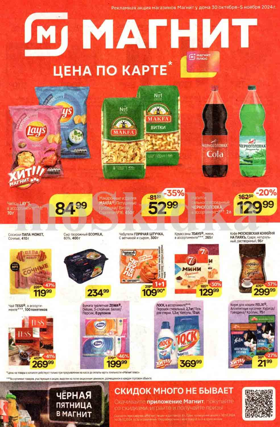 Смотрите еженедельный, новый каталог Магнит и не переплачивайте. Сегодня вас ждут ряд интересных предложений, привлекательных цен, акций и скидок. На страницах каталога Магнит вы найдете все свои любимые товары, которые сейчас предлагаются в супермаркете. Количество товара ограничено и действительно при наличии. Предложение «Цена по карте» действует при предъявлении на кассе "карты лояльности", до оплаты. До-акционные цены и размер скидки в каталоге указаны средние по сети. Цены по акции Магнит действуют в городах: Москва, Балашиха, Химки, Подольск, Королев, Мытищи, Люберцы, Электросталь, Коломна, Одинцово, Железнодорожный, Серпухов, Орехово-Зуево, Красногорск, Щелково, Сергиев Посад, Пушкино, Жуковский, Ногинск, Раменское и многих других населенных пунктах Московского региона.