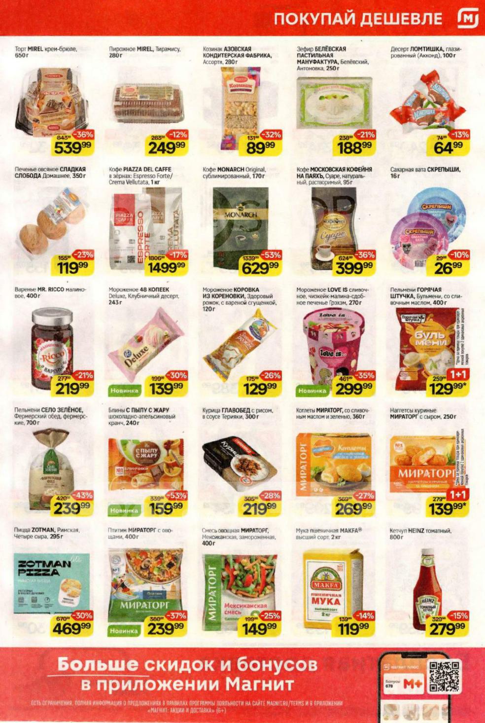 Смотрите еженедельный, новый каталог Магнит и не переплачивайте. Сегодня вас ждут ряд интересных предложений, привлекательных цен, акций и скидок. На страницах каталога Магнит вы найдете все свои любимые товары, которые сейчас предлагаются в супермаркете. Количество товара ограничено и действительно при наличии. Предложение «Цена по карте» действует при предъявлении на кассе "карты лояльности", до оплаты. До-акционные цены и размер скидки в каталоге указаны средние по сети. Цены по акции Магнит действуют в городах: Москва, Балашиха, Химки, Подольск, Королев, Мытищи, Люберцы, Электросталь, Коломна, Одинцово, Железнодорожный, Серпухов, Орехово-Зуево, Красногорск, Щелково, Сергиев Посад, Пушкино, Жуковский, Ногинск, Раменское и многих других населенных пунктах Московского региона.