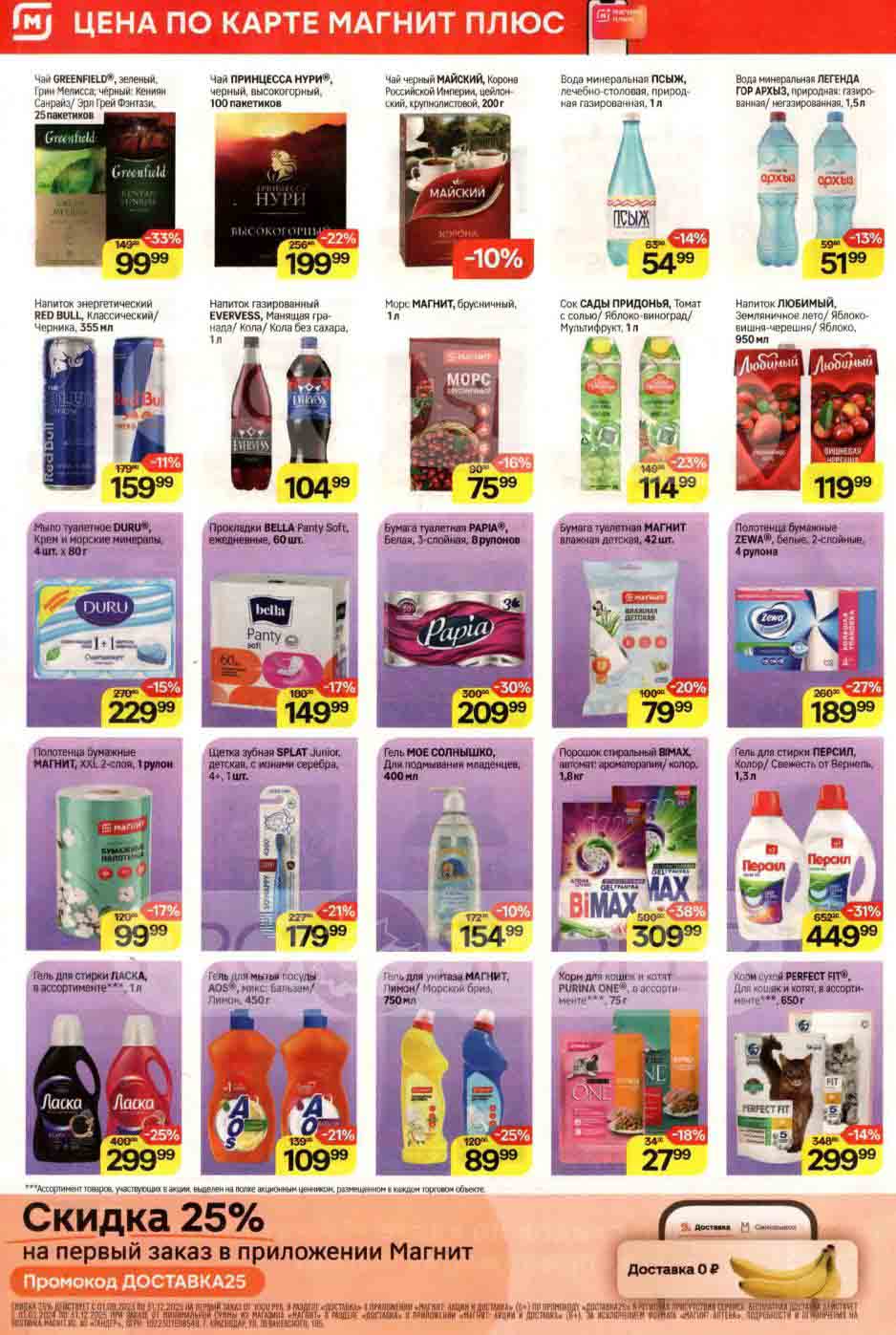 Каталог «Магнит» с 5 по 11 февраля 2025 года. Для получения скидки необходимо предъявить карту «Магнит». В акции участвуют различные категории товаров, от продуктов питания до бытовой химии и кормов для животных. Размер скидок варьируется от 13% до 55%.