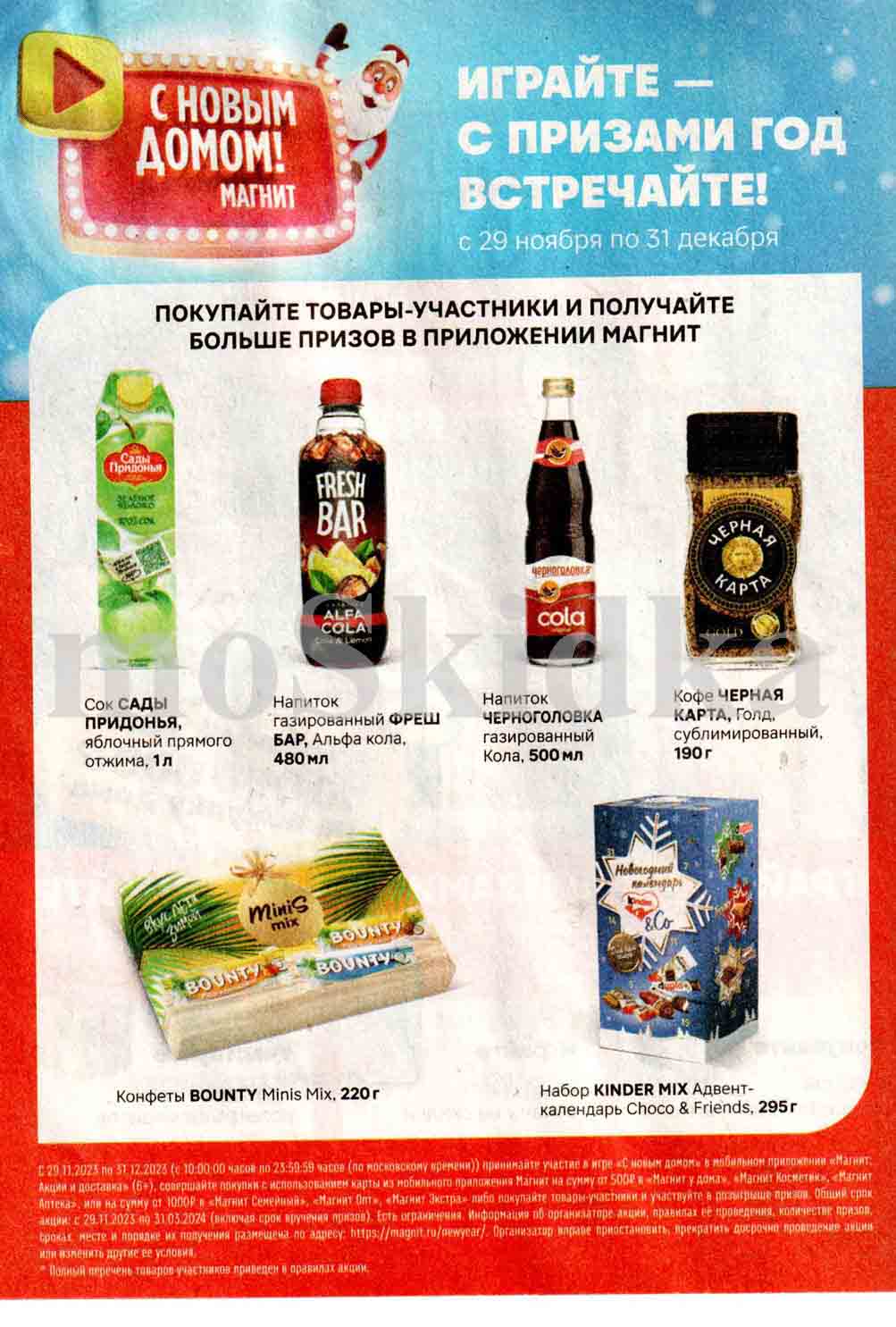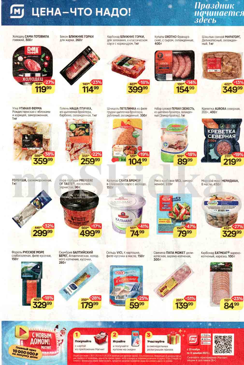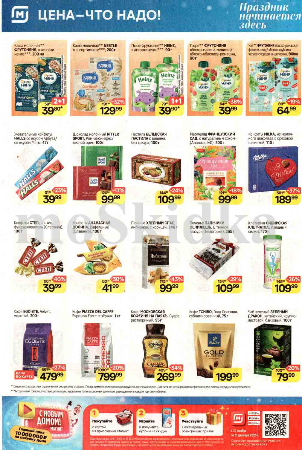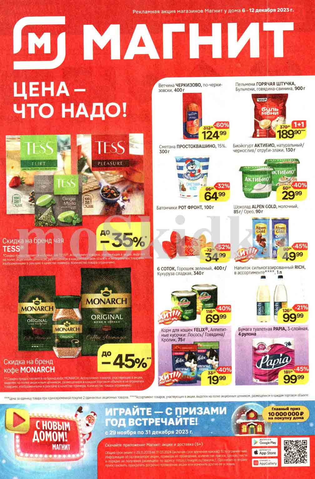 Смотрите еженедельный, новый каталог Магнит и не переплачивайте. Сегодня вас ждут ряд интересных предложений, привлекательных цен, акций и скидок. На страницах каталога Магнит вы найдете все свои любимые товары, которые сейчас предлагаются в супермаркете. Количество товара ограничено и действительно при наличии. Предложение «Цена по карте» действует при предъявлении на кассе "карты лояльности", до оплаты. До-акционные цены и размер скидки в каталоге указаны средние по сети. Цены по акции Магнит действуют в городах: Москва, Балашиха, Химки, Подольск, Королев, Мытищи, Люберцы, Электросталь, Коломна, Одинцово, Железнодорожный, Серпухов, Орехово-Зуево, Красногорск, Щелково, Сергиев Посад, Пушкино, Жуковский, Ногинск, Раменское и многих других населенных пунктах Московского региона.
