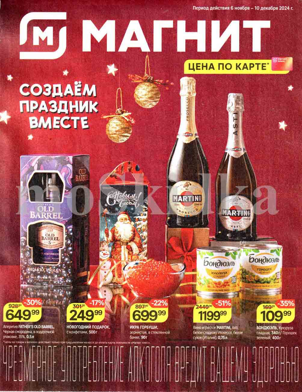 Смотрите еженедельный, новый каталог Магнит и не переплачивайте. Сегодня вас ждут ряд интересных предложений, привлекательных цен, акций и скидок. На страницах каталога Магнит вы найдете все свои любимые товары, которые сейчас предлагаются в супермаркете. Количество товара ограничено и действительно при наличии. Предложение «Цена по карте» действует при предъявлении на кассе "карты лояльности", до оплаты. До-акционные цены и размер скидки в каталоге указаны средние по сети. Цены по акции Магнит действуют в городах: Москва, Балашиха, Химки, Подольск, Королев, Мытищи, Люберцы, Электросталь, Коломна, Одинцово, Железнодорожный, Серпухов, Орехово-Зуево, Красногорск, Щелково, Сергиев Посад, Пушкино, Жуковский, Ногинск, Раменское и многих других населенных пунктах Московского региона.