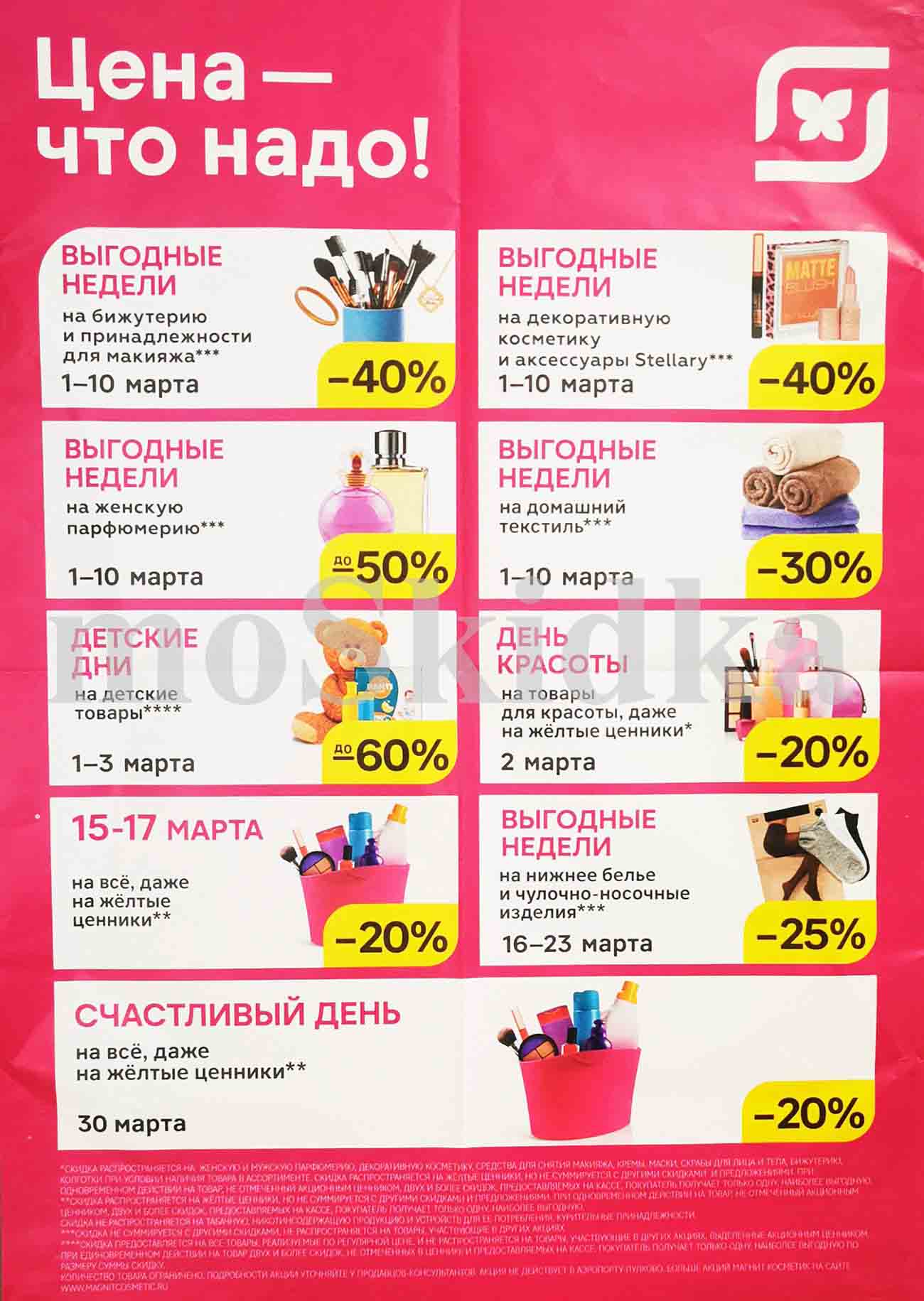 Подробную информацию об правилах, наличии товаров, адресах и скидках узнавайте в магазинах или по тел.: 8 800 200-90-02 и на сайте: cosmetic.magnit.ru
