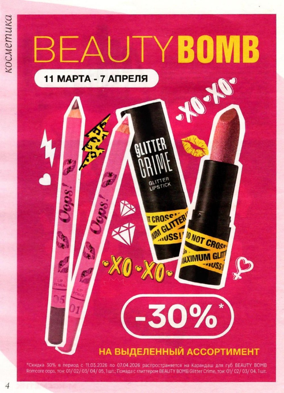 Листайте каталог Магнит Косметик, выбирайте свои товары по сниженным ценам и спешите в супермаркеты за своей выгодной покупкой. Цены по акции Магнит Косметик действуют в городах: Москва, Балашиха, Химки, Подольск, Королев, Мытищи, Люберцы, Электросталь, Коломна, Одинцово, Железнодорожный, Серпухов, Орехово-Зуево, Красногорск, Щелково, Сергиев Посад, Пушкино, Жуковский, Ногинск, Раменское, Клин, Воскресенск, Домодедово и многих других населенных пунктах Московского региона.