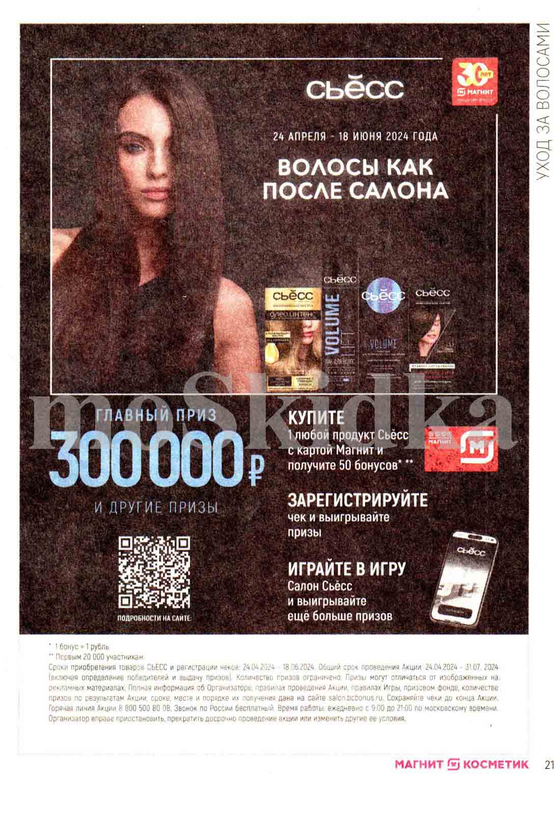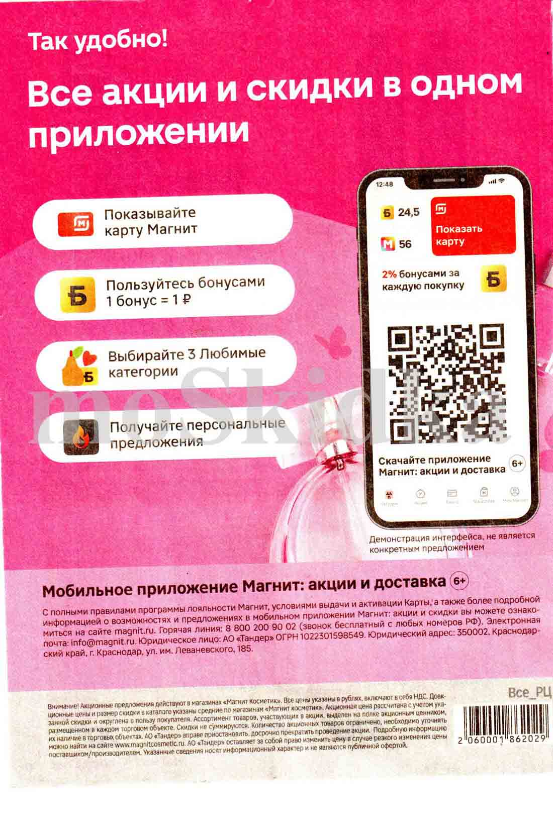 Подробную информацию об правилах, наличии товаров, адресах и скидках узнавайте в магазинах или по тел.: 8 800 200-90-02 и на сайте: cosmetic.magnit.ru