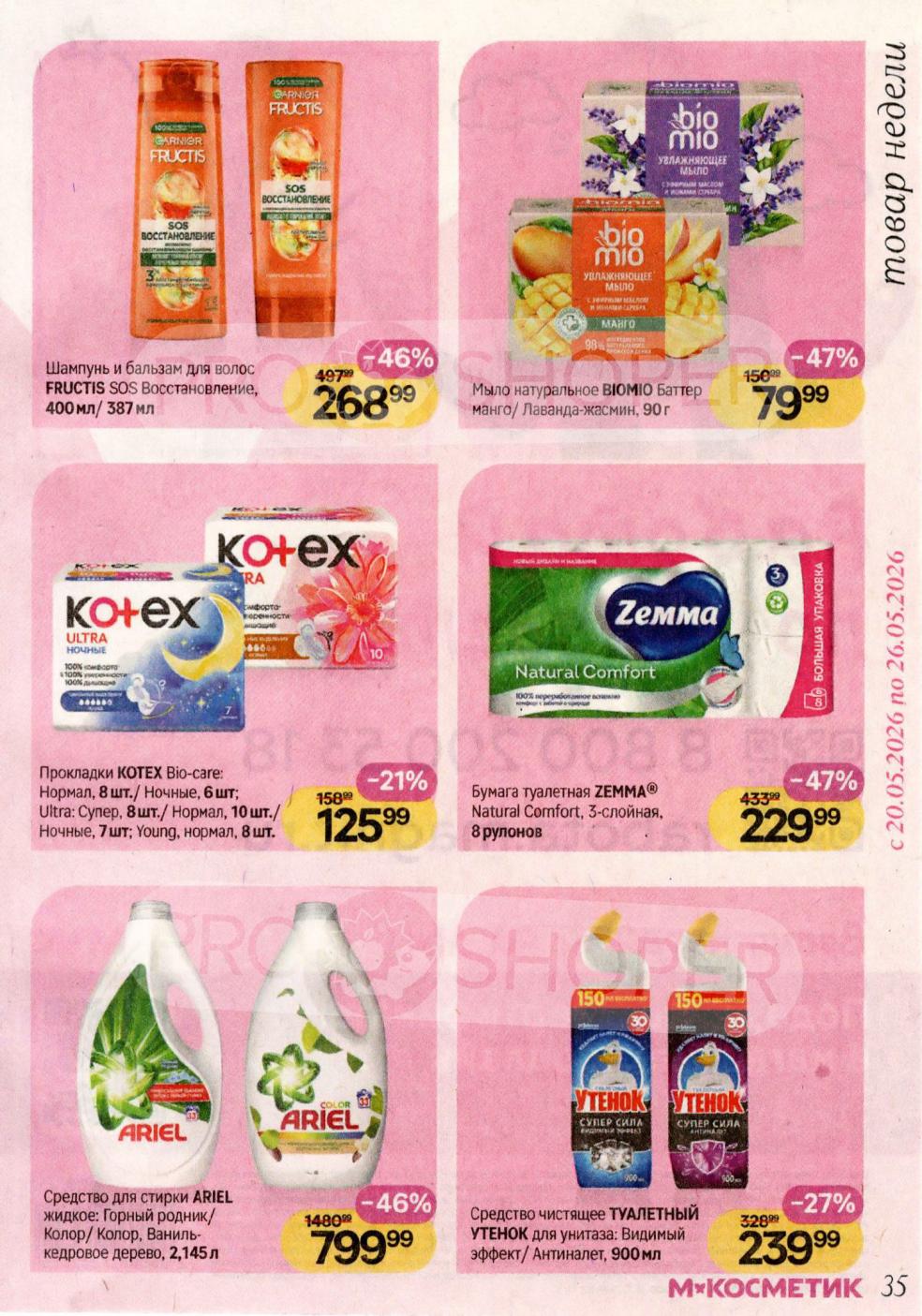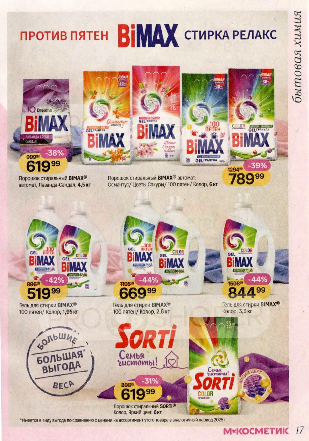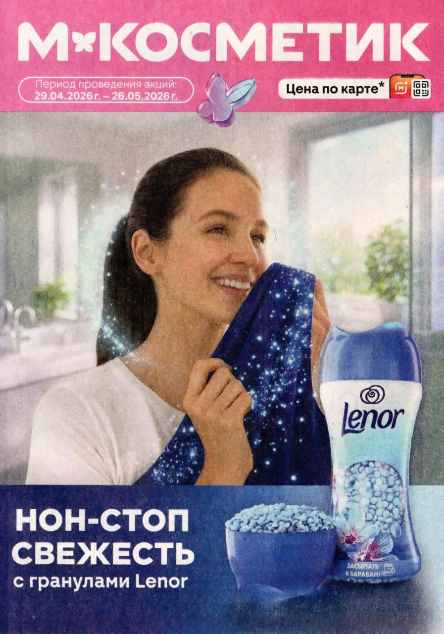Сеть магазинов «М.Косметик» запускает новую акцию. Она действует с 29 апреля — 26 мая 2026 года. В этот период вы можете купить средства для стирки, уборки и товары для дома по специальным ценам. Скидки на некоторые позиции достигают 57 процентов. Все цены указаны с учётом карты «Магнит Плюс». Для участия в акции предъявите карту на кассе до оплаты.