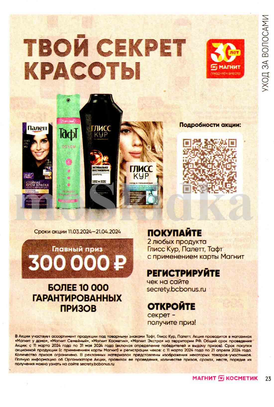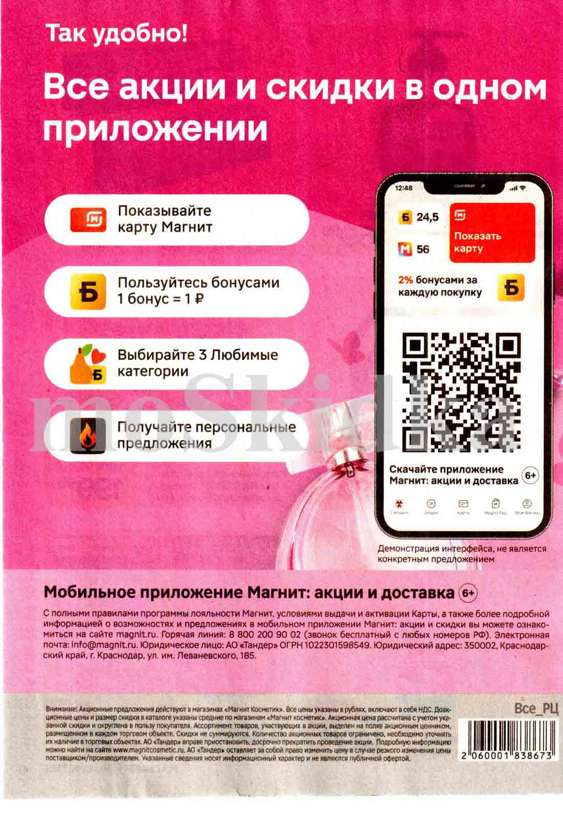 Подробную информацию об правилах, наличии товаров, адресах и скидках узнавайте в магазинах или по тел.: 8 800 200-90-02 и на сайте: cosmetic.magnit.ru