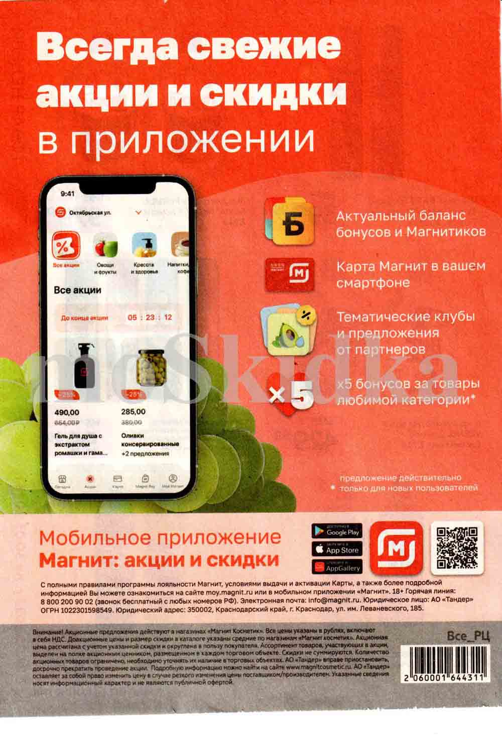 Подробную информацию об правилах, наличии товаров, адресах и скидках узнавайте в магазинах или по тел.: 8 800 200-90-02 и на сайте: cosmetic.magnit.ru