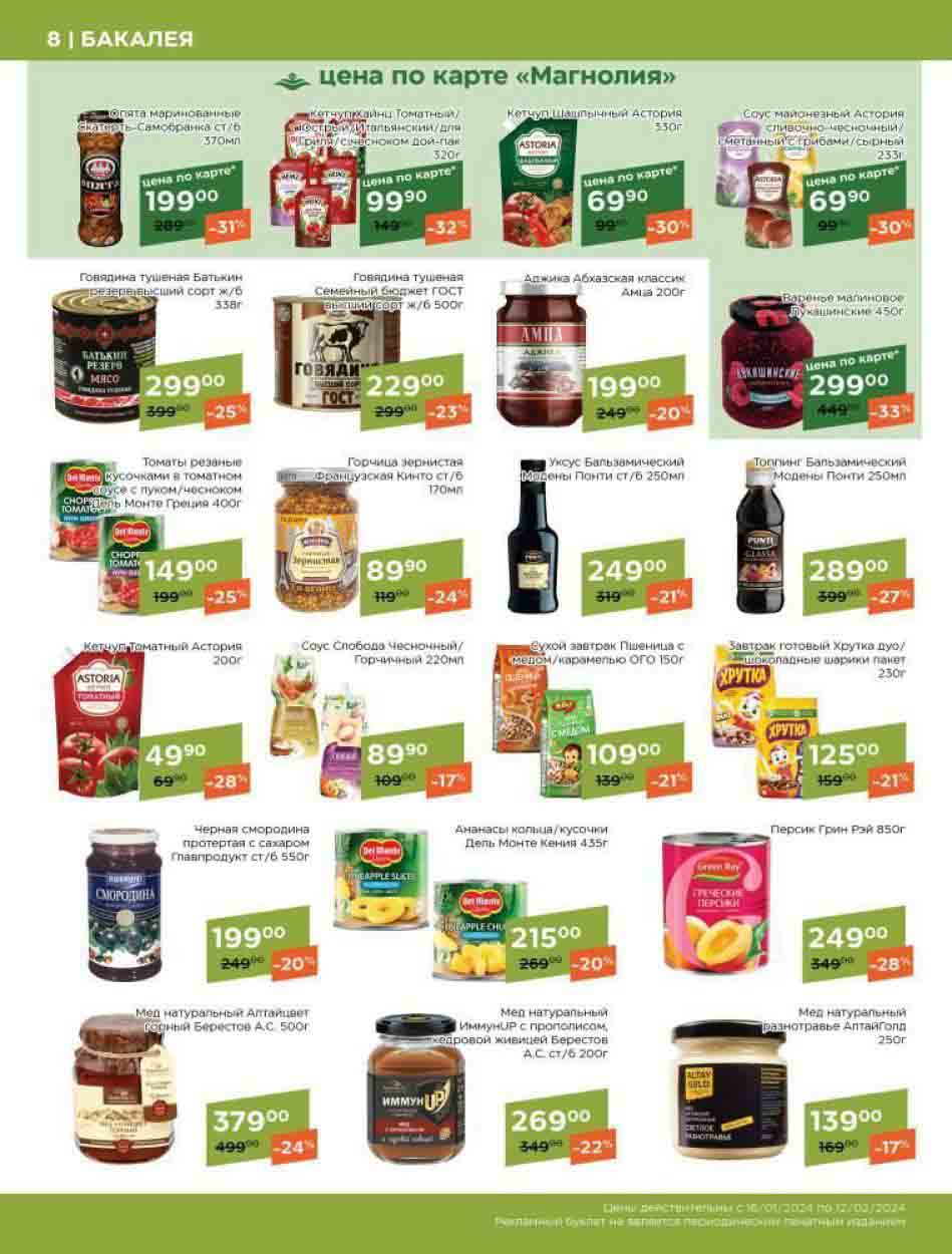 - Скидка применима для покупок, сделанных с использованием карты Magnolia, со скидкой до 50% на выбранные продукты.