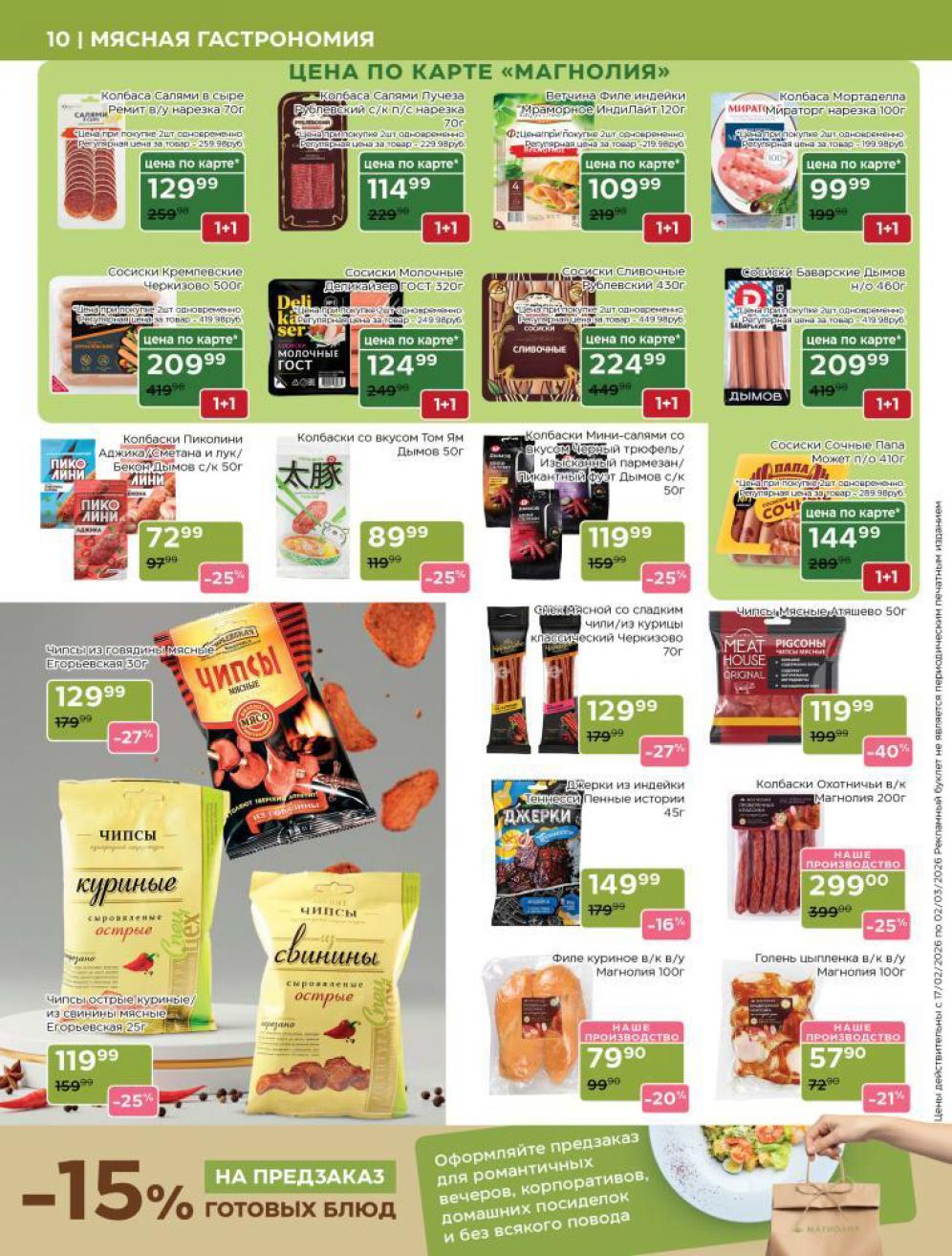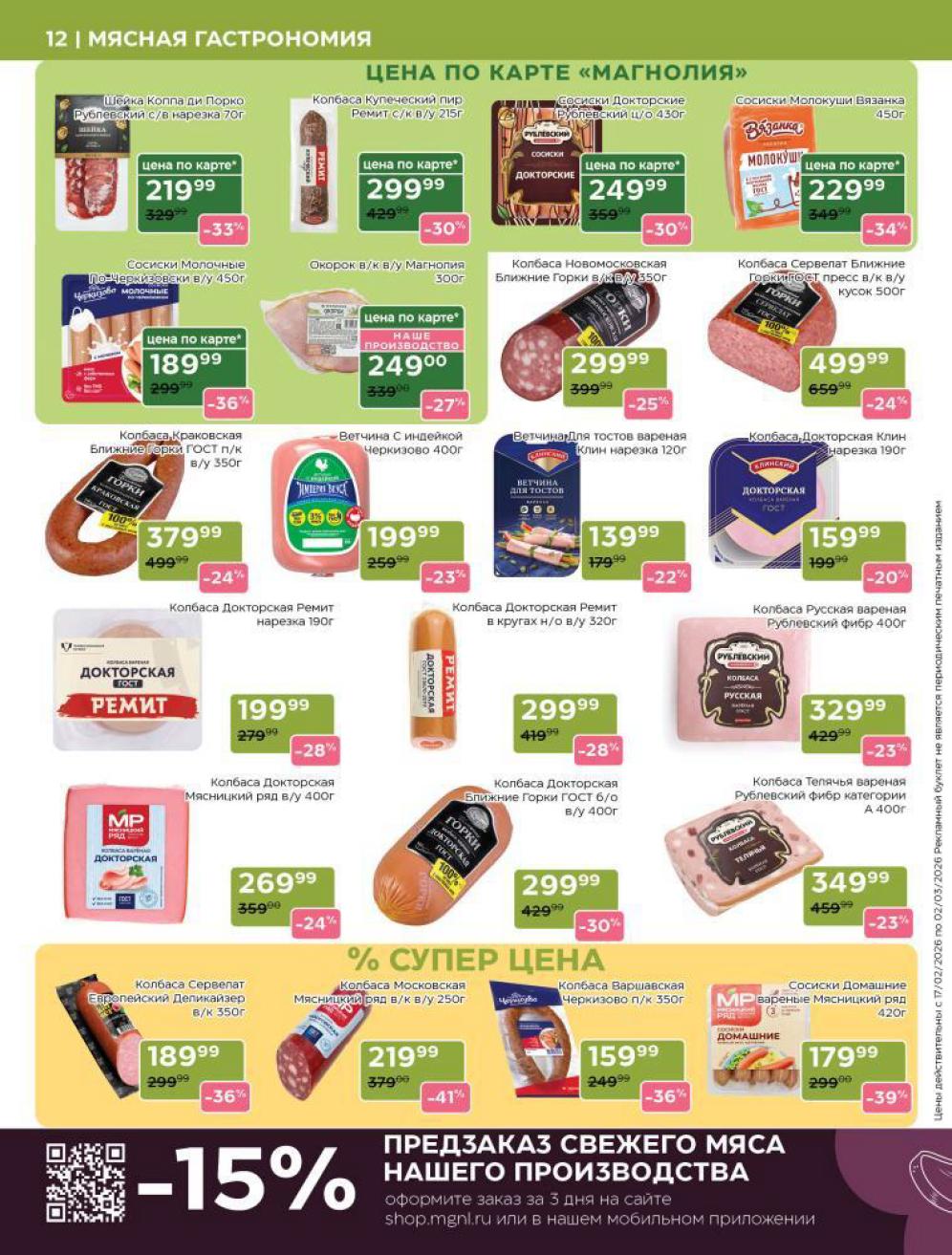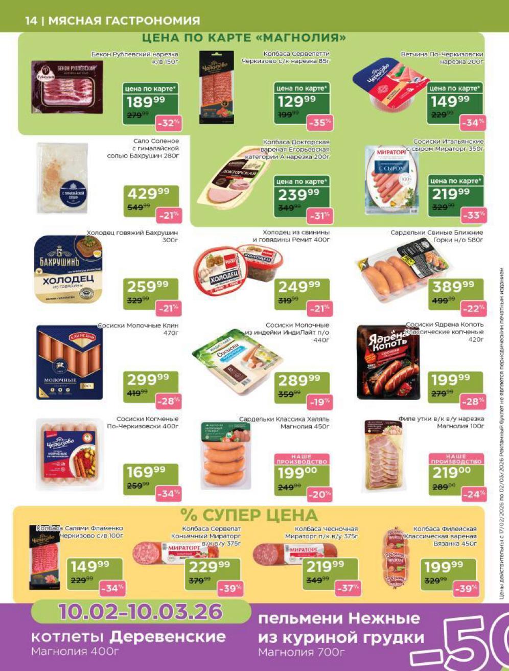 Каталог акций «Магнолия» — это ваш персональный навигатор в мире премиальных покупок с выгодой. Редакция моСкидка.ру ежедневно мониторит актуальные предложения сети супермаркетов представительского класса «Магнолия». В этом обзоре мы собрали лучшие скидки недели на продукцию собственного производства (свежая выпечка, кулинария, мясные деликатесы), сезонные предложения и эксклюзивные позиции для праздничного стола. Планируйте визит в магазин или заказ онлайн заранее, чтобы успеть купить гастрономические новинки по специальным ценам и воспользоваться промокодом MAGNOLIA на скидку 20% для первого заказа