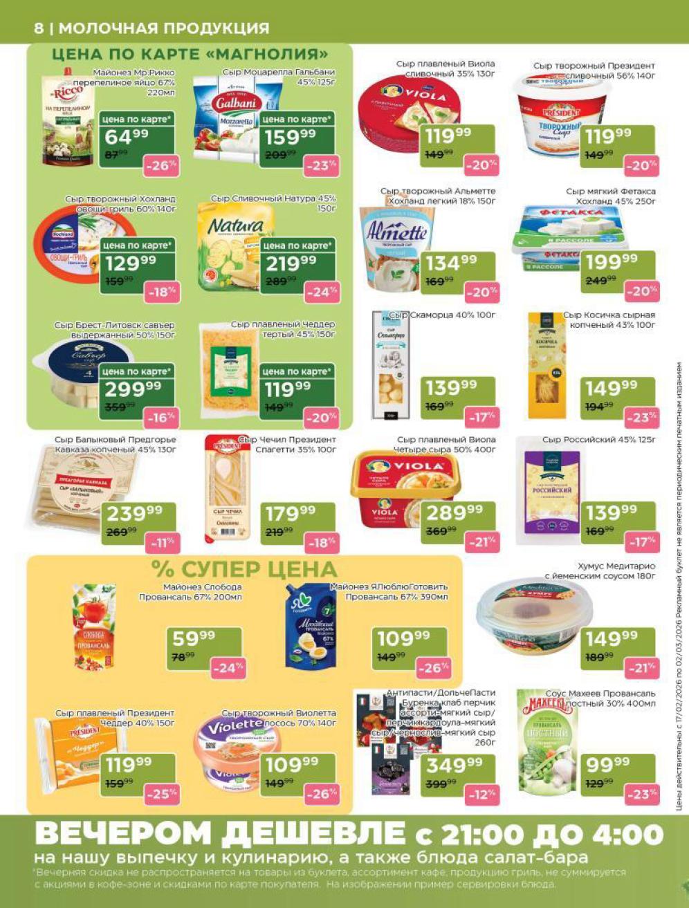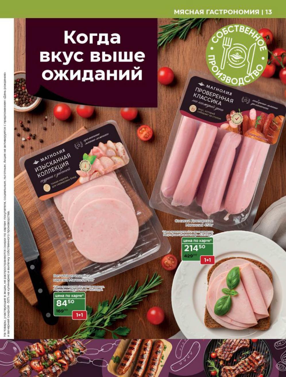 Продукция собственного производства: Акции на товары из пекарни, кулинарии и мясного цеха часто действуют в ограниченном количестве из-за ручного формата производства — уточняйте наличие на месте.
