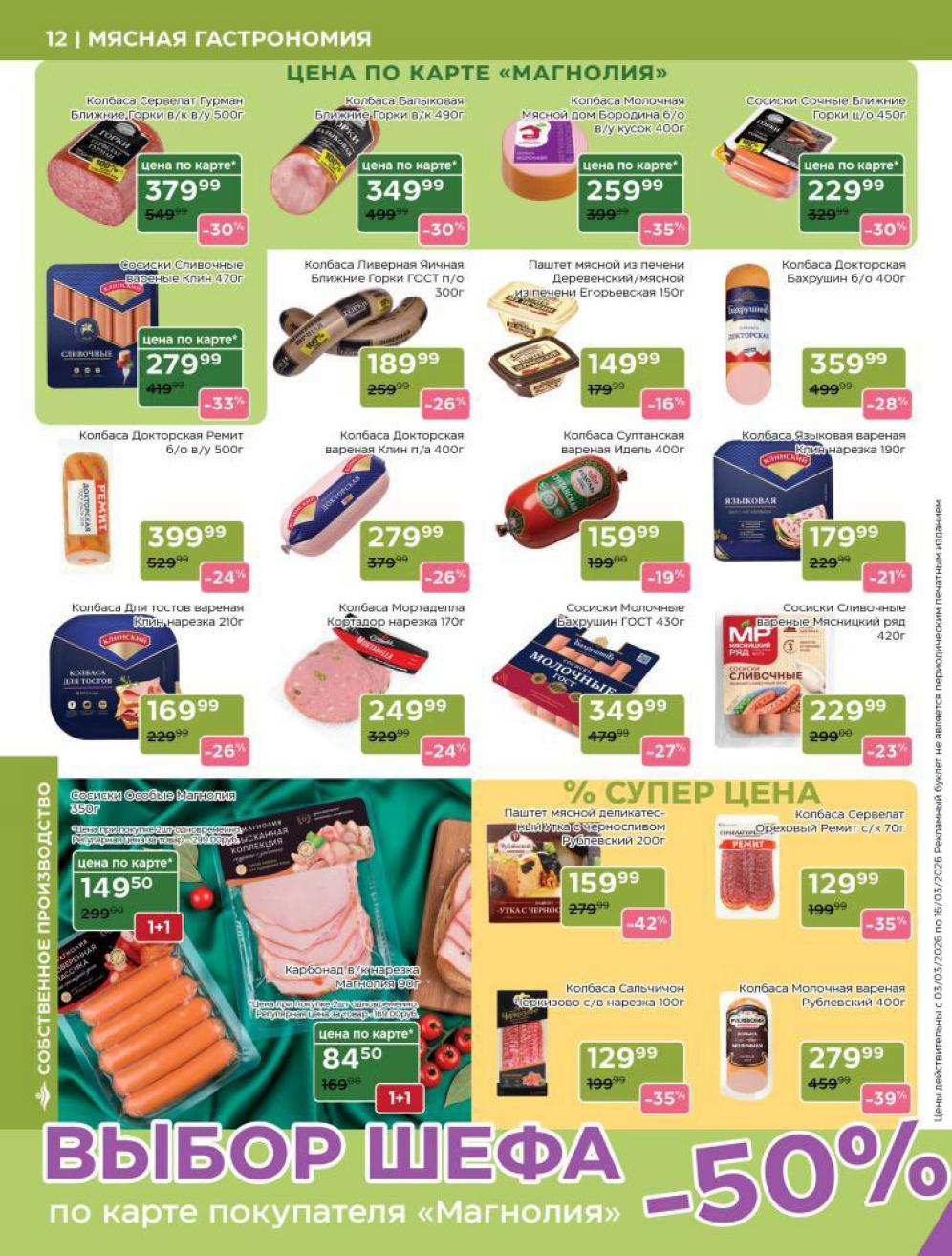 Каталог акций «Магнолия» — это ваш персональный навигатор в мире премиальных покупок с выгодой. Редакция моСкидка.ру ежедневно мониторит актуальные предложения сети супермаркетов представительского класса «Магнолия». В этом обзоре мы собрали лучшие скидки недели на продукцию собственного производства (свежая выпечка, кулинария, мясные деликатесы), сезонные предложения и эксклюзивные позиции для праздничного стола. Планируйте визит в магазин или заказ онлайн заранее, чтобы успеть купить гастрономические новинки по специальным ценам и воспользоваться промокодом MAGNOLIA на скидку 20% для первого заказа