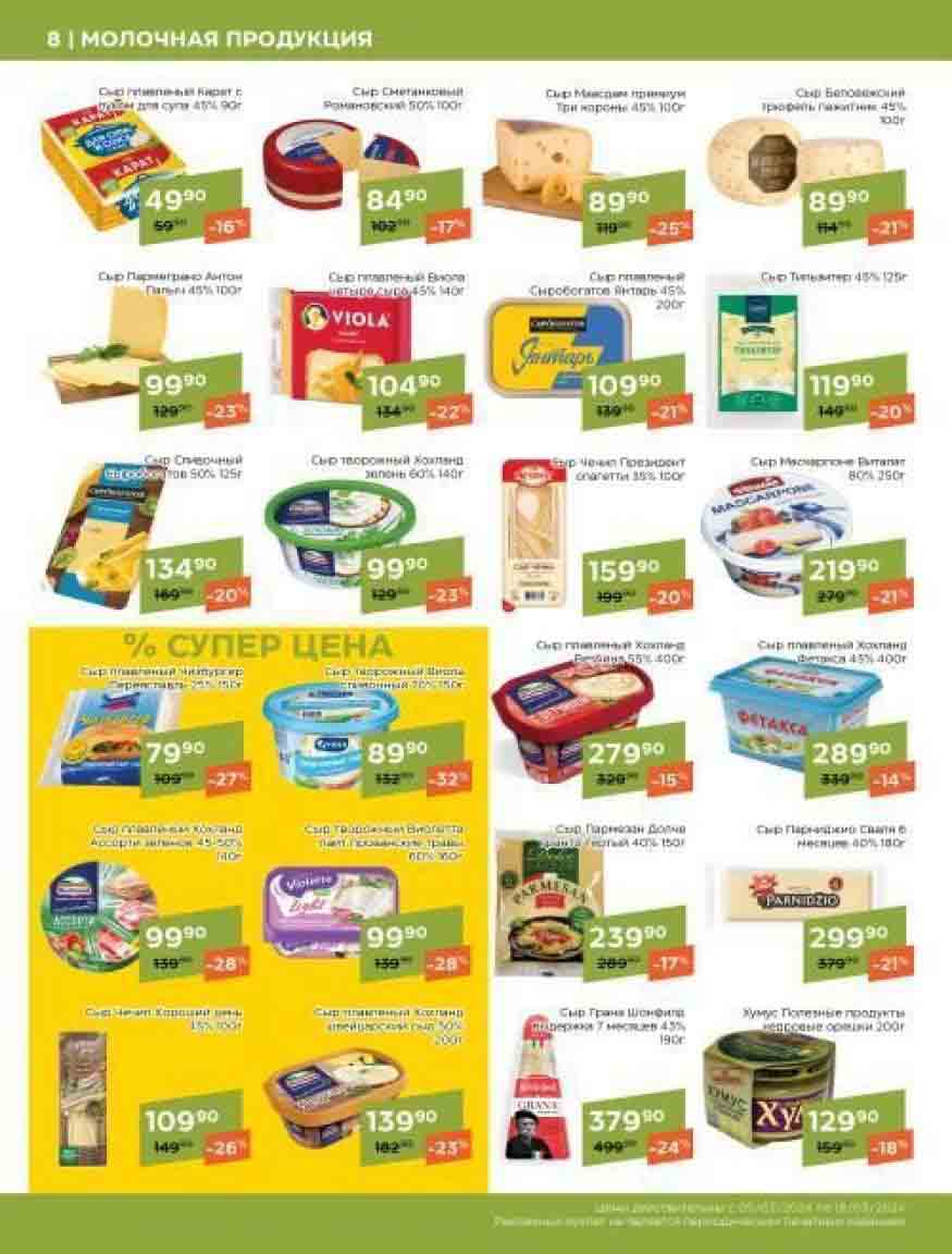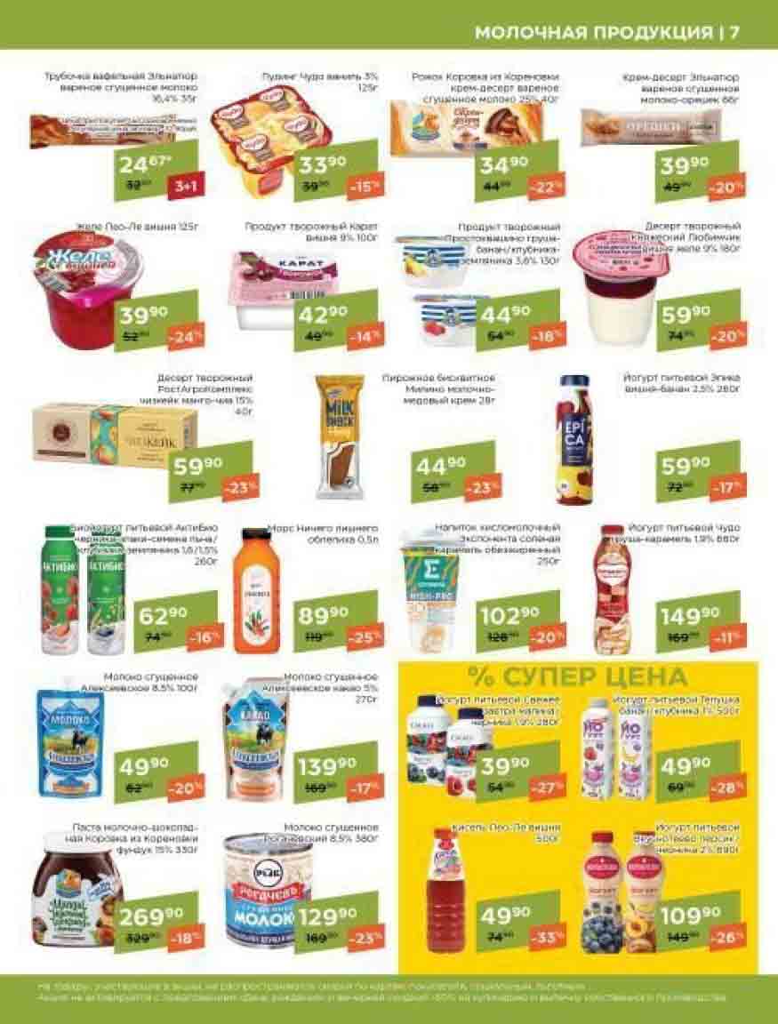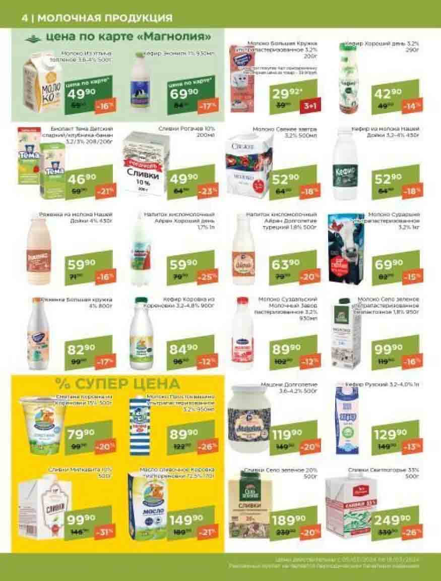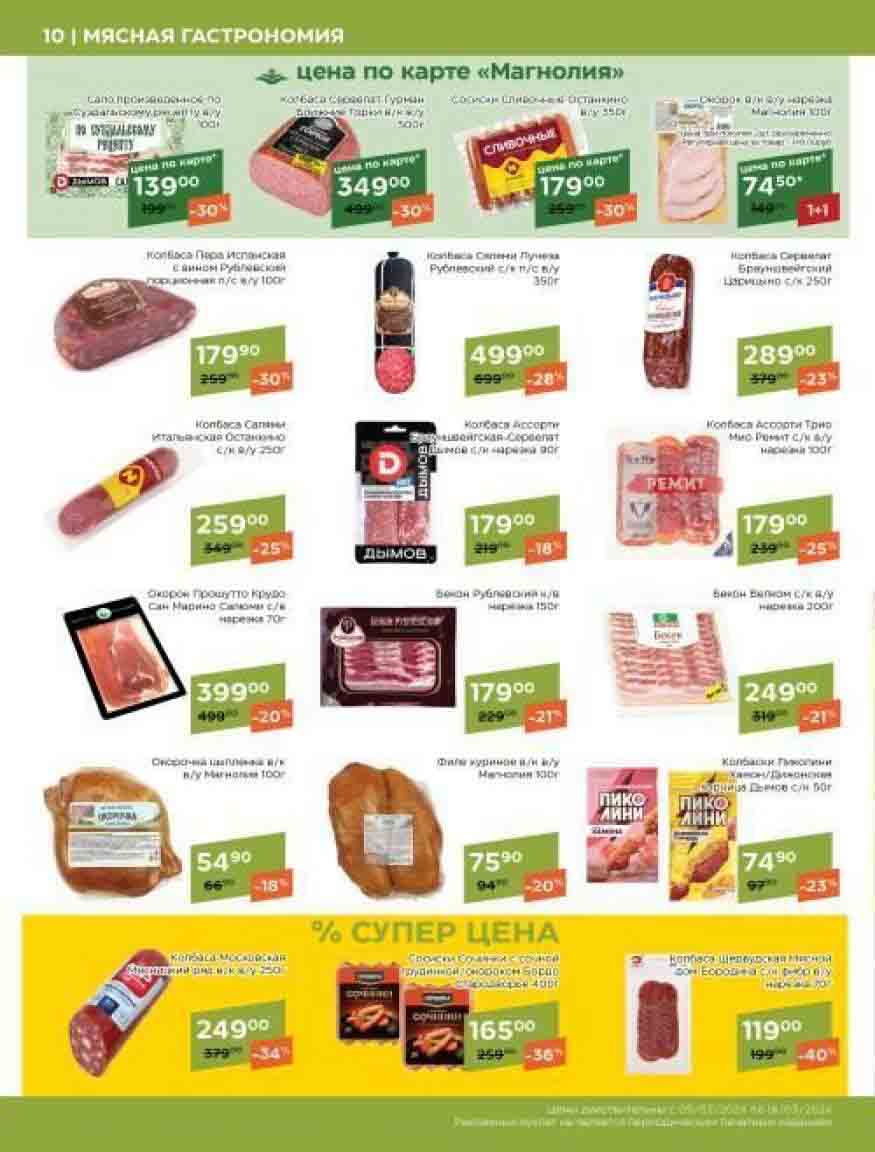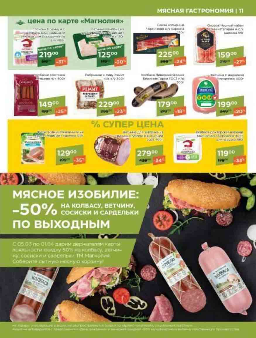 В акционном буклете предложены выгодные цены на различные продукты, такие как торт Кокосовый 750г цена: 449 руб., семга кусок с/с в в/у Магнолия 100г цена: 349.90 руб., продукт творожный Простоквашино зерненый 5% 150г цена: 64.90 руб., ролл с ветчиной и сыром 2шт 170г цена: 149 руб. и многое другое.