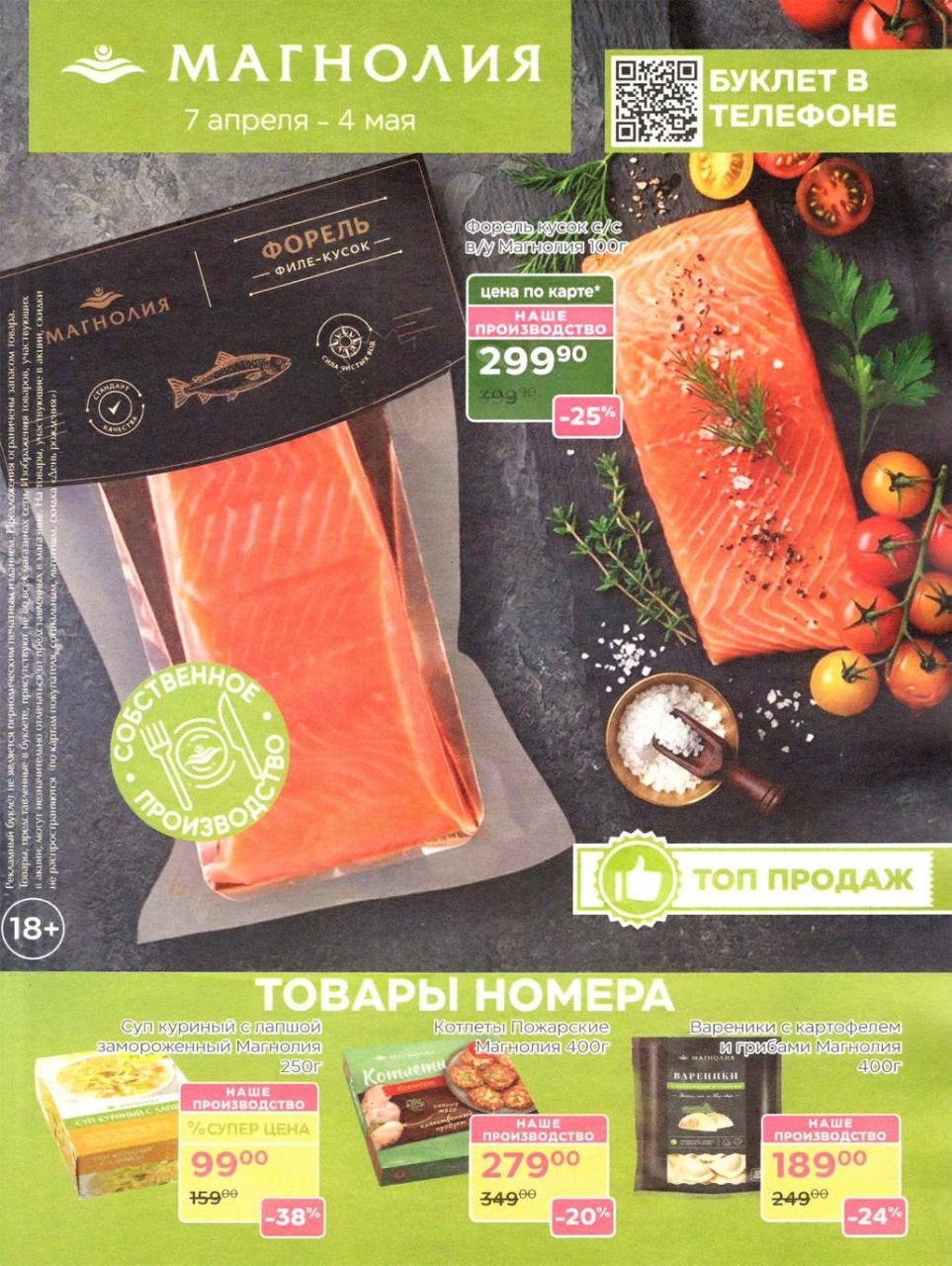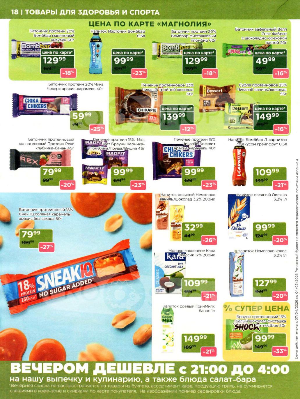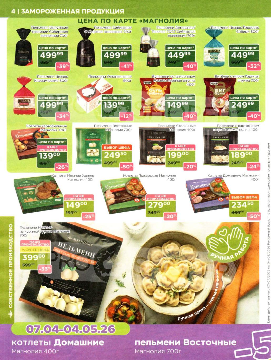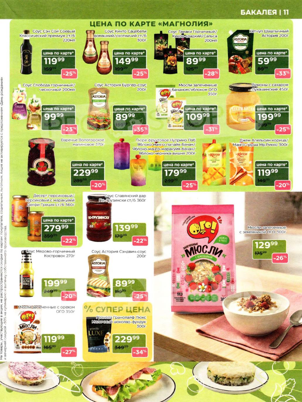 Продукция собственного производства: Акции на товары из пекарни, кулинарии и мясного цеха часто действуют в ограниченном количестве из-за ручного формата производства — уточняйте наличие на месте.