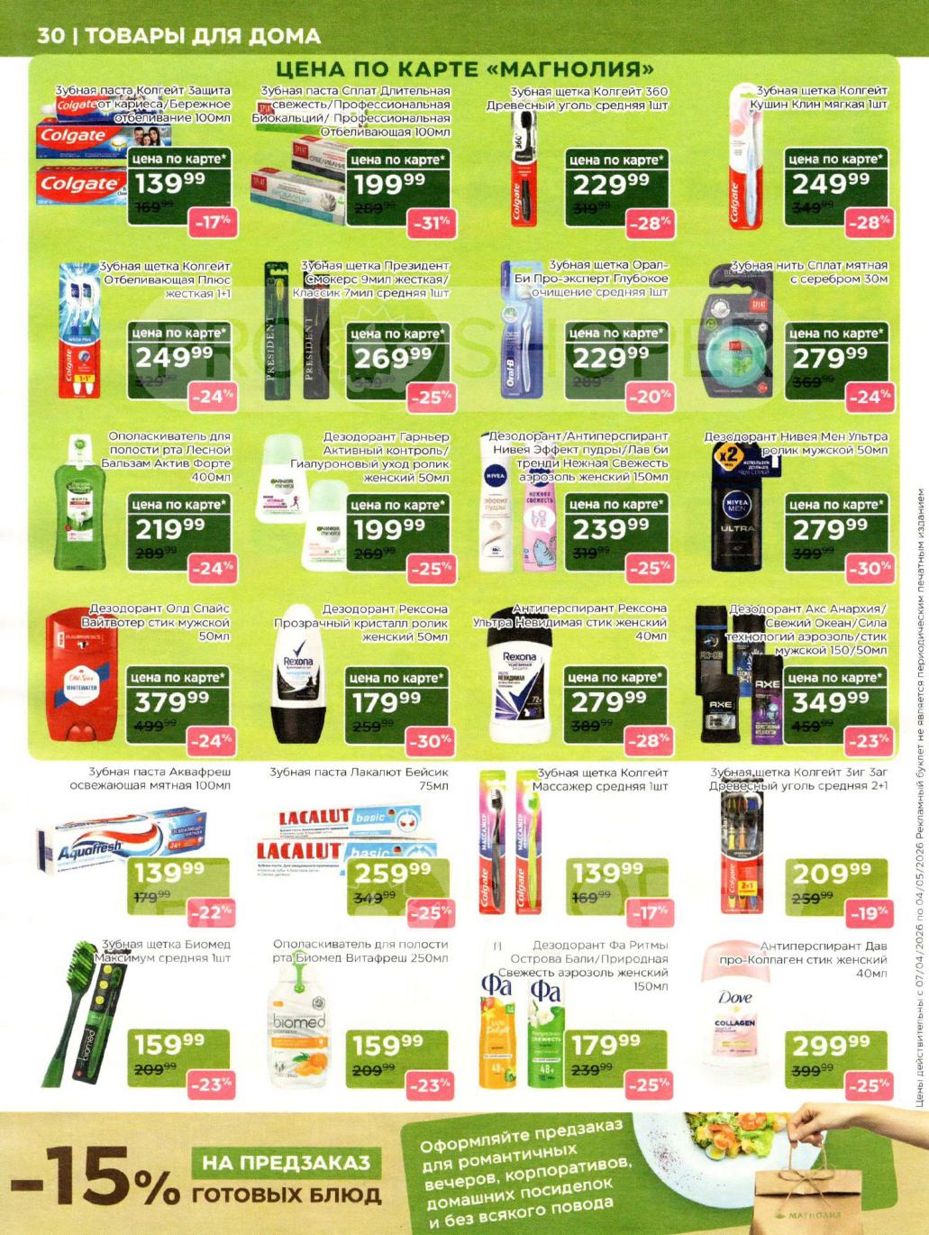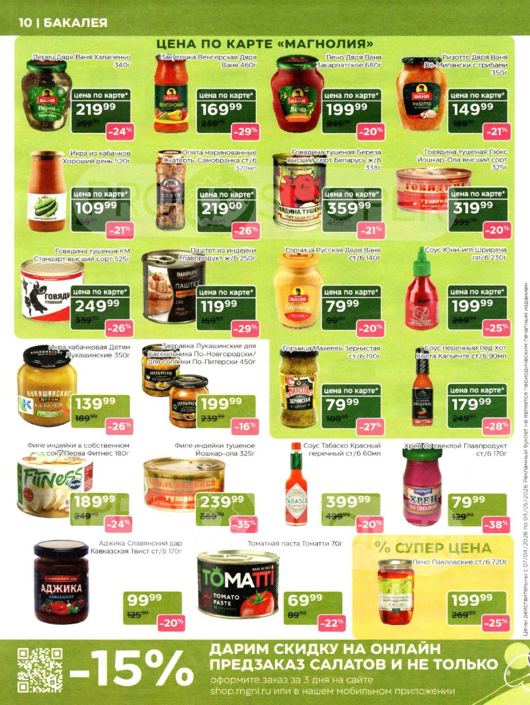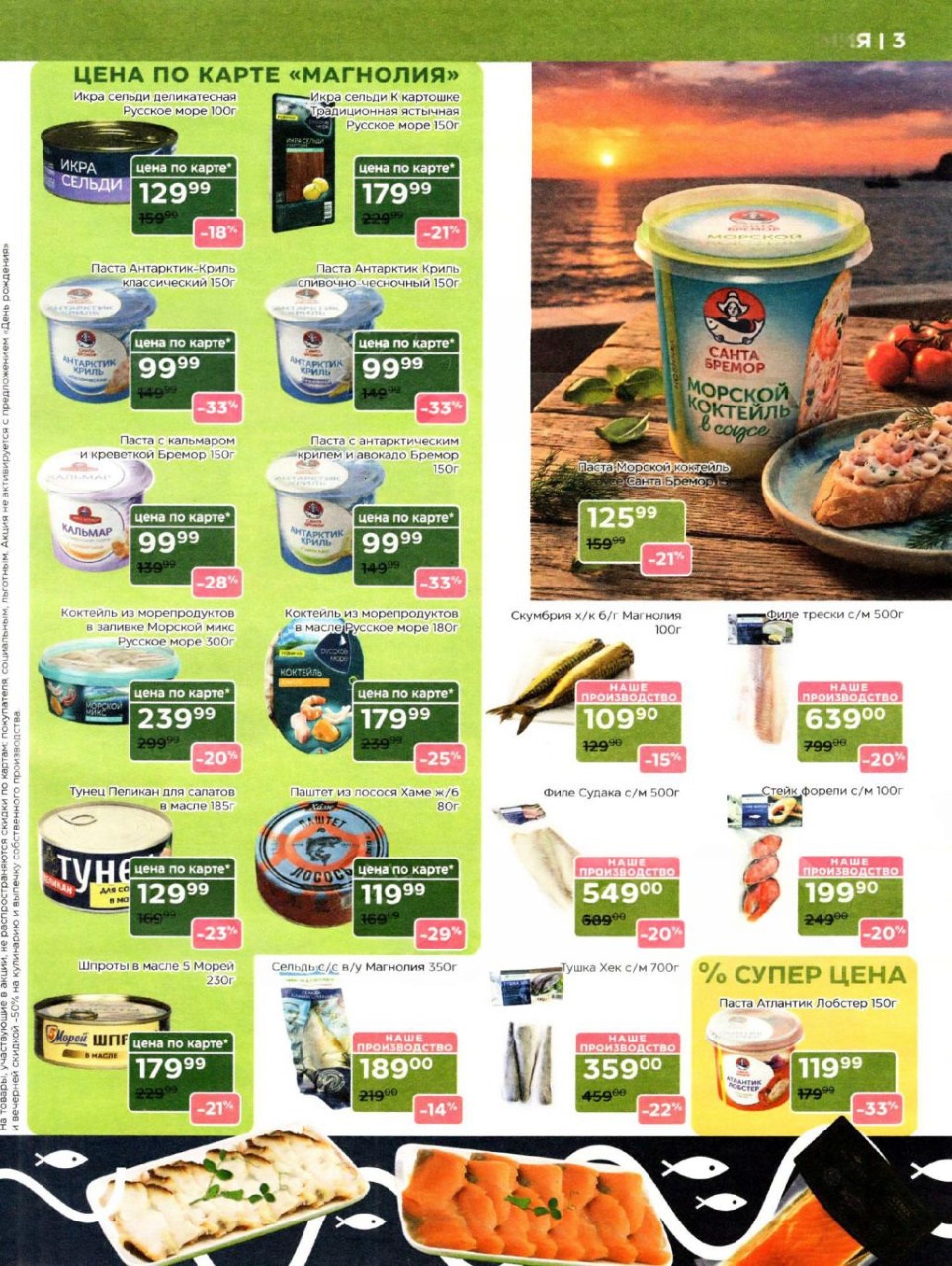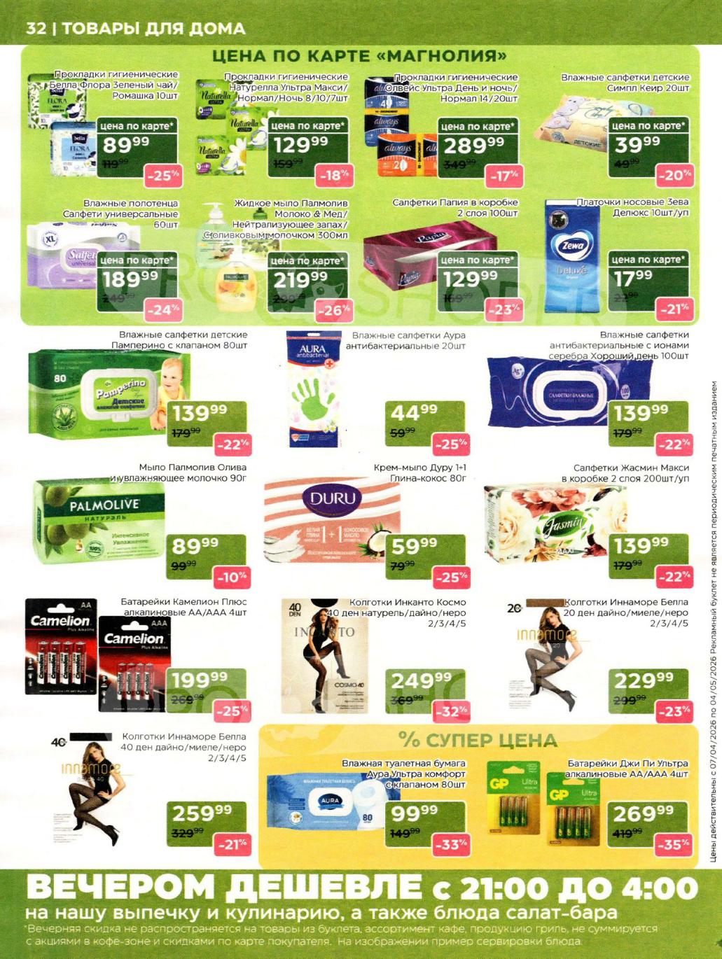 Продукция собственного производства: Акции на товары из пекарни, кулинарии и мясного цеха часто действуют в ограниченном количестве из-за ручного формата производства — уточняйте наличие на месте.