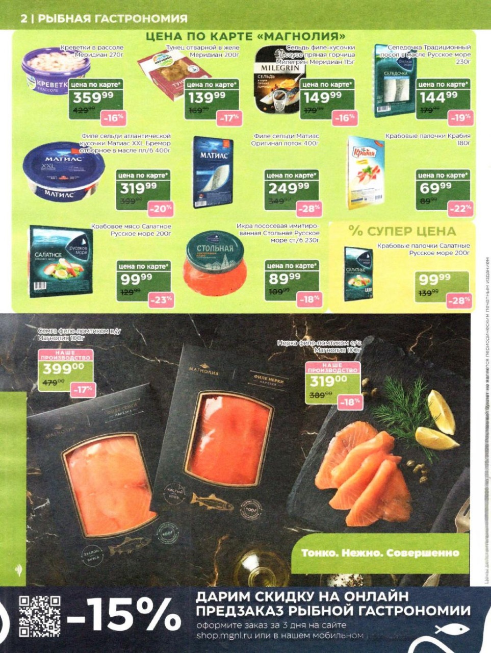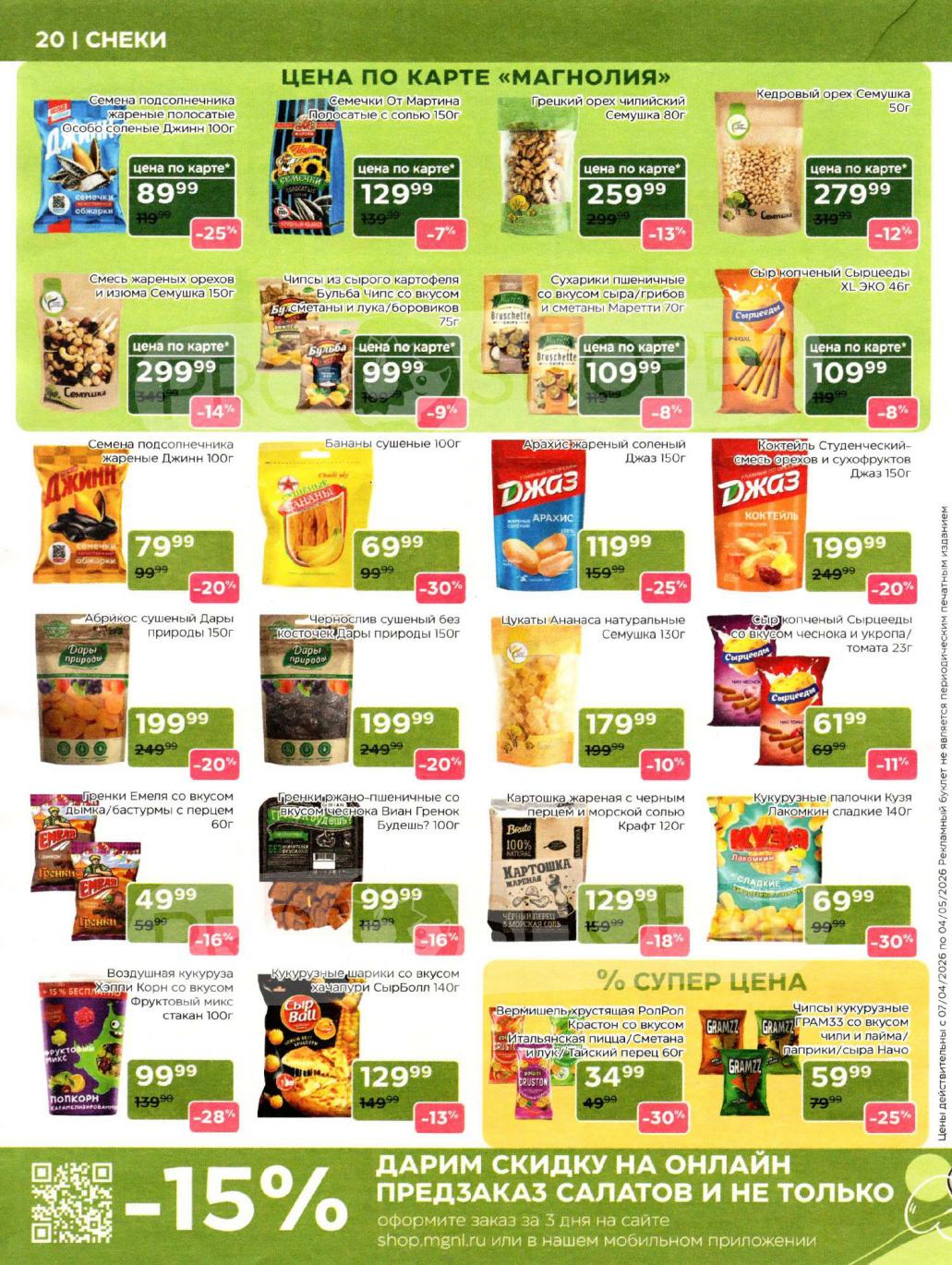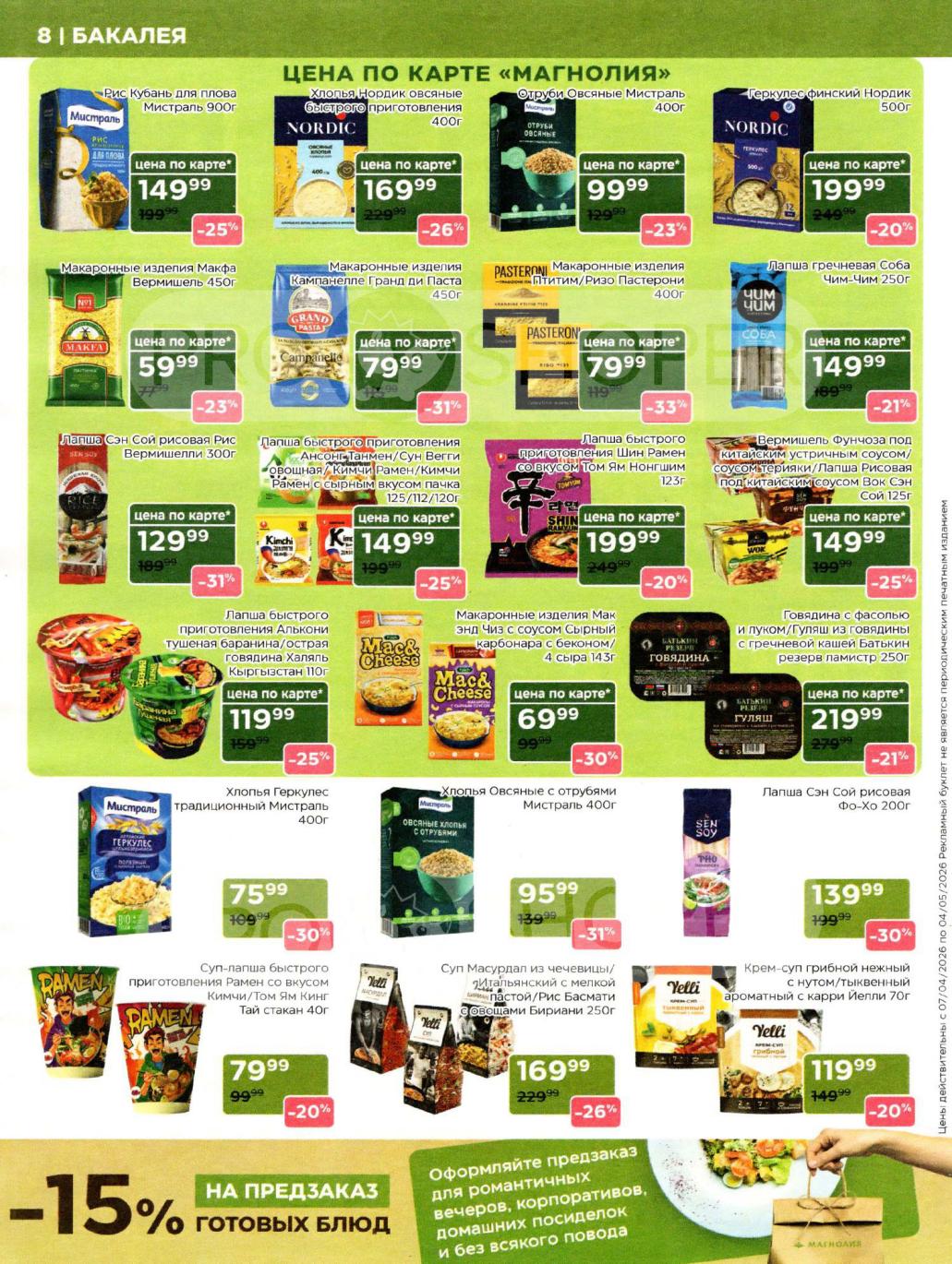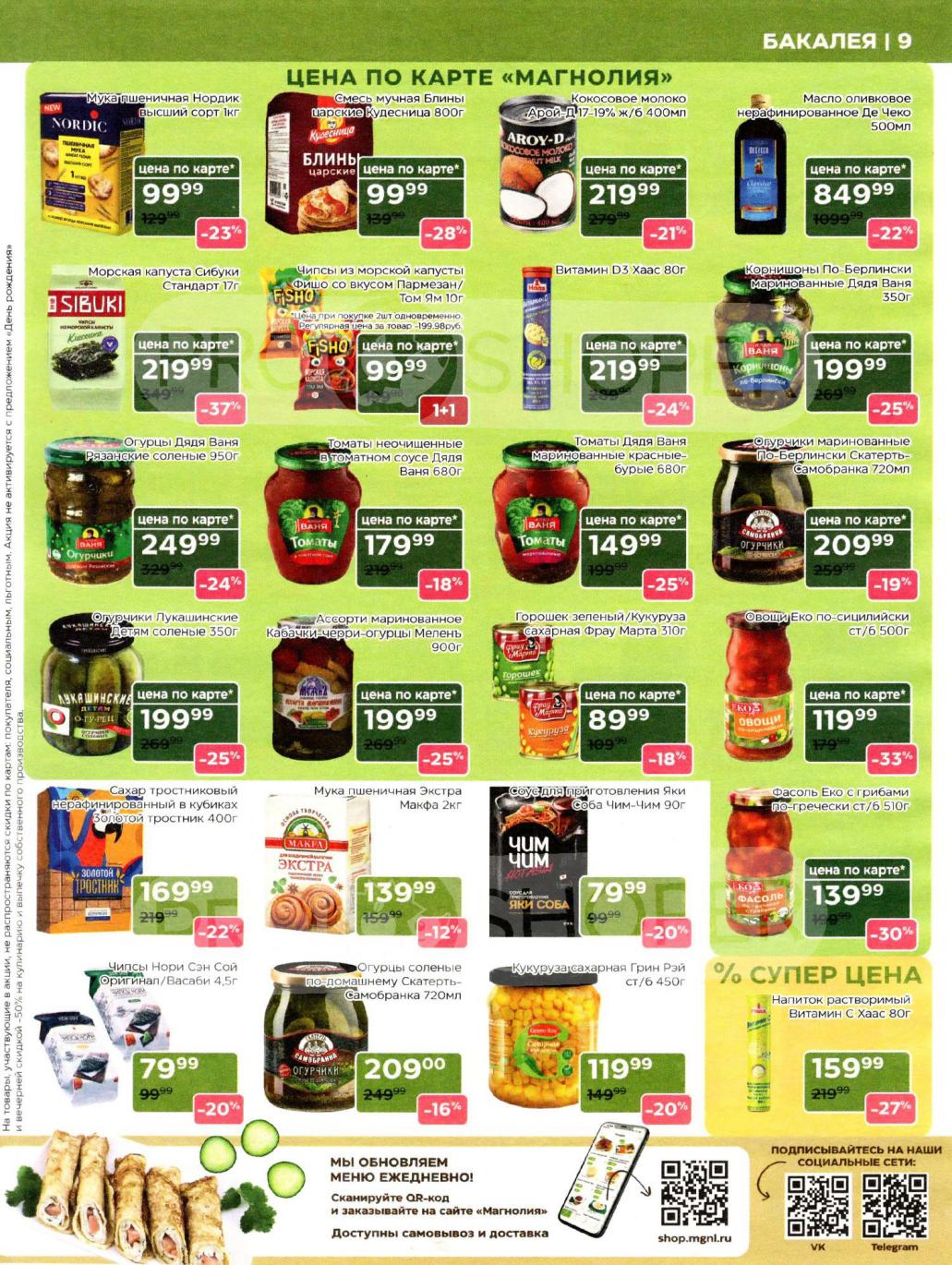 Каталог акций «Магнолия» — это ваш персональный навигатор в мире премиальных покупок с выгодой. Редакция моСкидка.ру ежедневно мониторит актуальные предложения сети супермаркетов представительского класса «Магнолия». В этом обзоре мы собрали лучшие скидки недели на продукцию собственного производства (свежая выпечка, кулинария, мясные деликатесы), сезонные предложения и эксклюзивные позиции для праздничного стола. Планируйте визит в магазин или заказ онлайн заранее, чтобы успеть купить гастрономические новинки по специальным ценам и воспользоваться промокодом MAGNOLIA на скидку 20% для первого заказа
