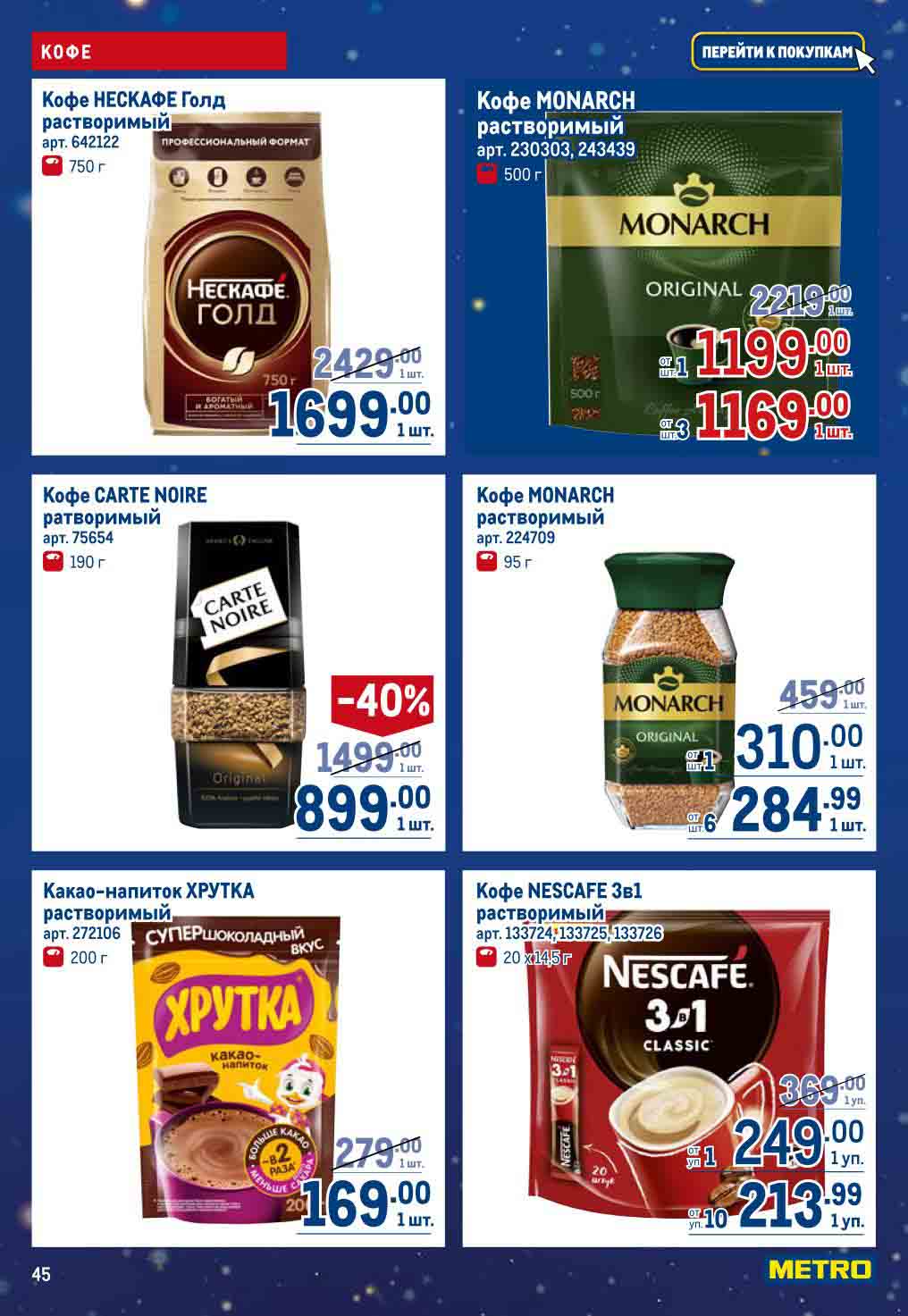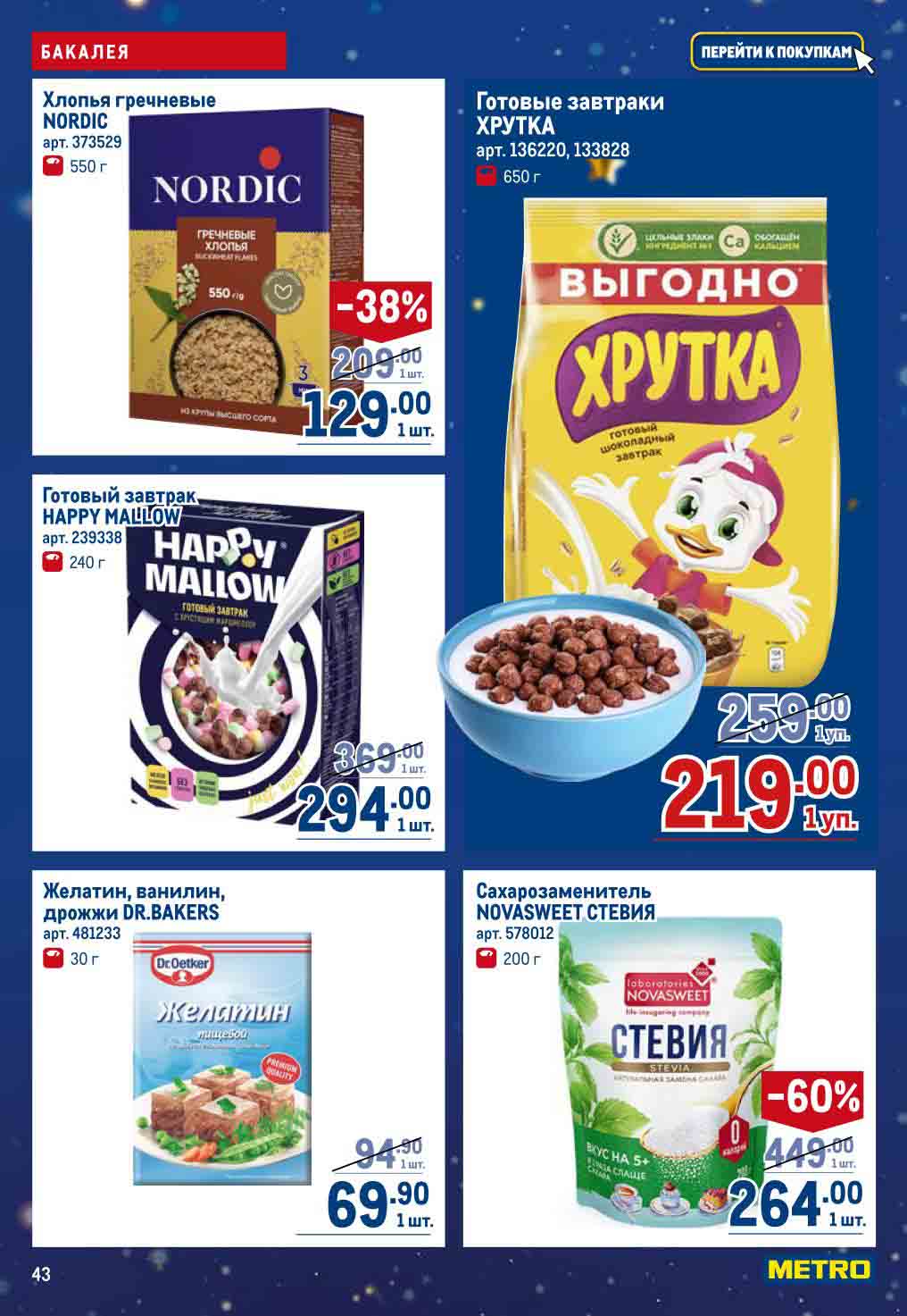 На страницах каталога Метро вы найдете все свои любимые товары, которые сейчас предлагаются в супермаркете. Не пропустите последние специальные предложения и сэкономьте на ваших покупках. В METRO представлен широкий ассортимент товаров, который отличается лучшими скидками и качеством. Цены по акции Метро действуют в городах: Москва, Балашиха, Химки, Подольск, Люберцы, Электросталь, Железнодорожный, Лобня, Ногинск и многих других населенных пунктах Московского региона.
