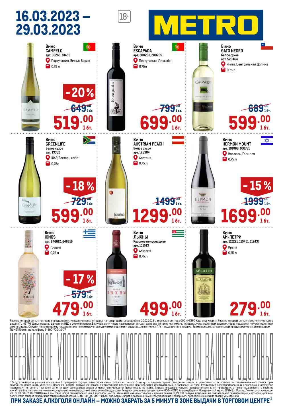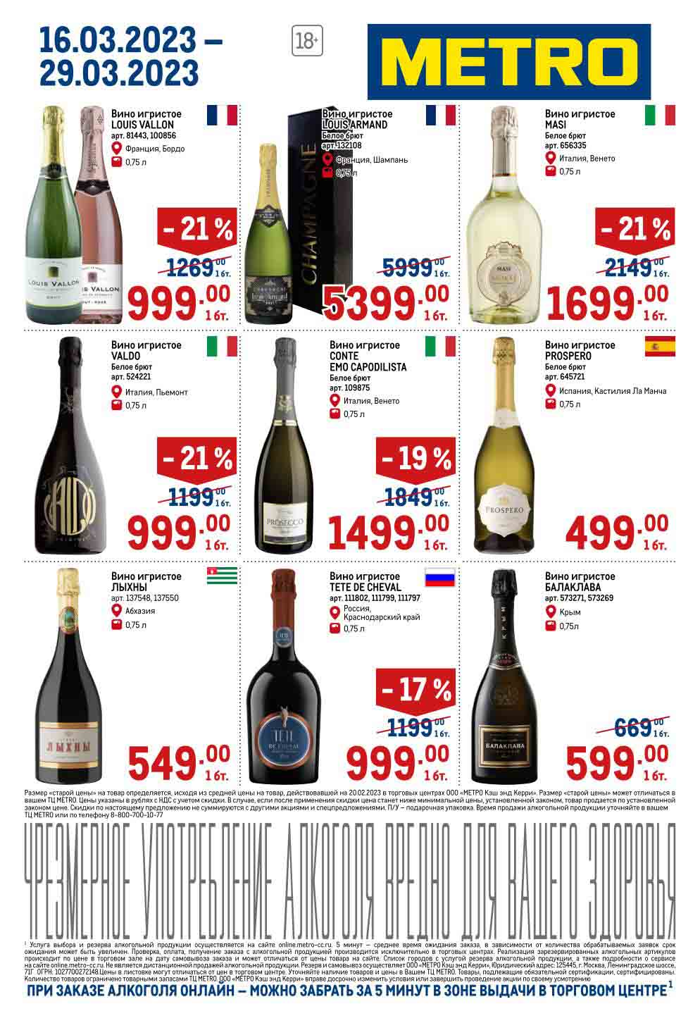 Метро акции с 16 марта — 29 марта 2023. Каталог Алкоголь