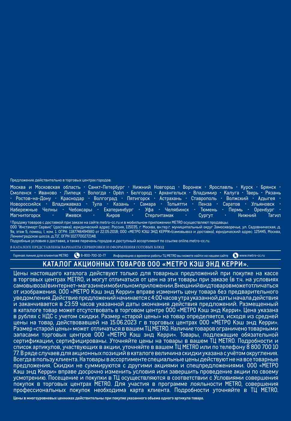 Подробную информацию об правилах, наличии товаров, адресах и скидках узнавайте в магазинахили по тел.: 8 (800) 700-10-77 и на сайте: metro-cc.ru