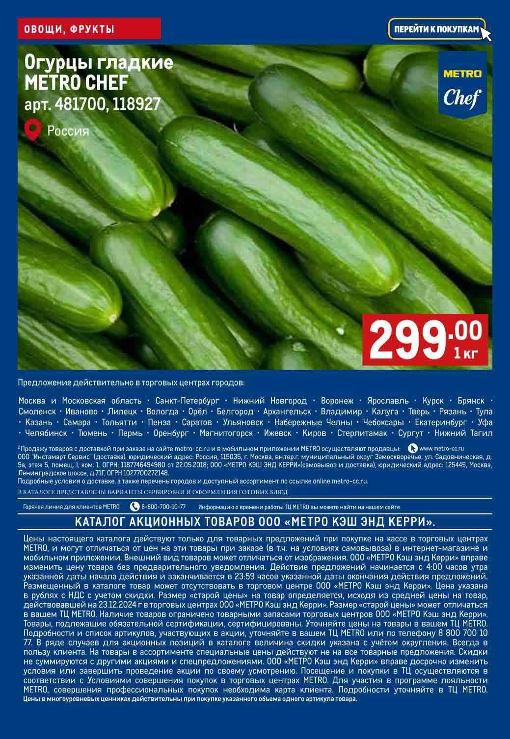 Метро акции с 16 января — 22 января 2025. Каталог Овощи и фрукты