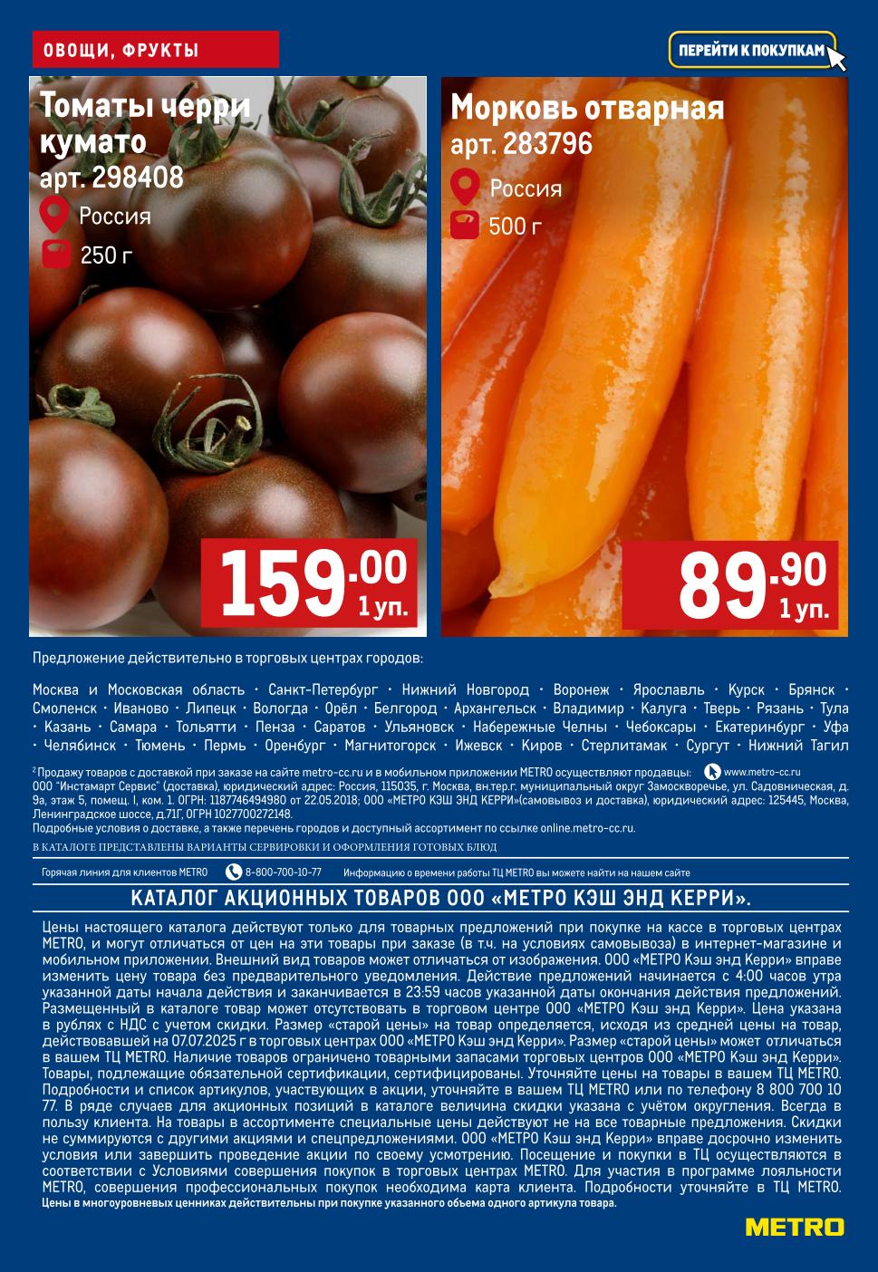 Метро акции с 17 июля — 23 июля 2025. Каталог Овощи и фрукты