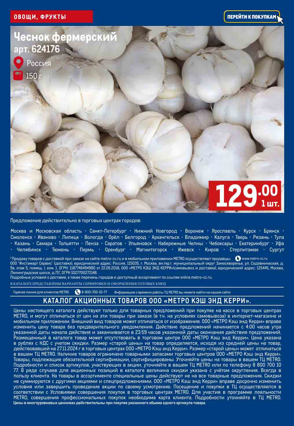 Метро акции с 19 декабря — 25 декабря 2024. Каталог Овощи и фрукты
