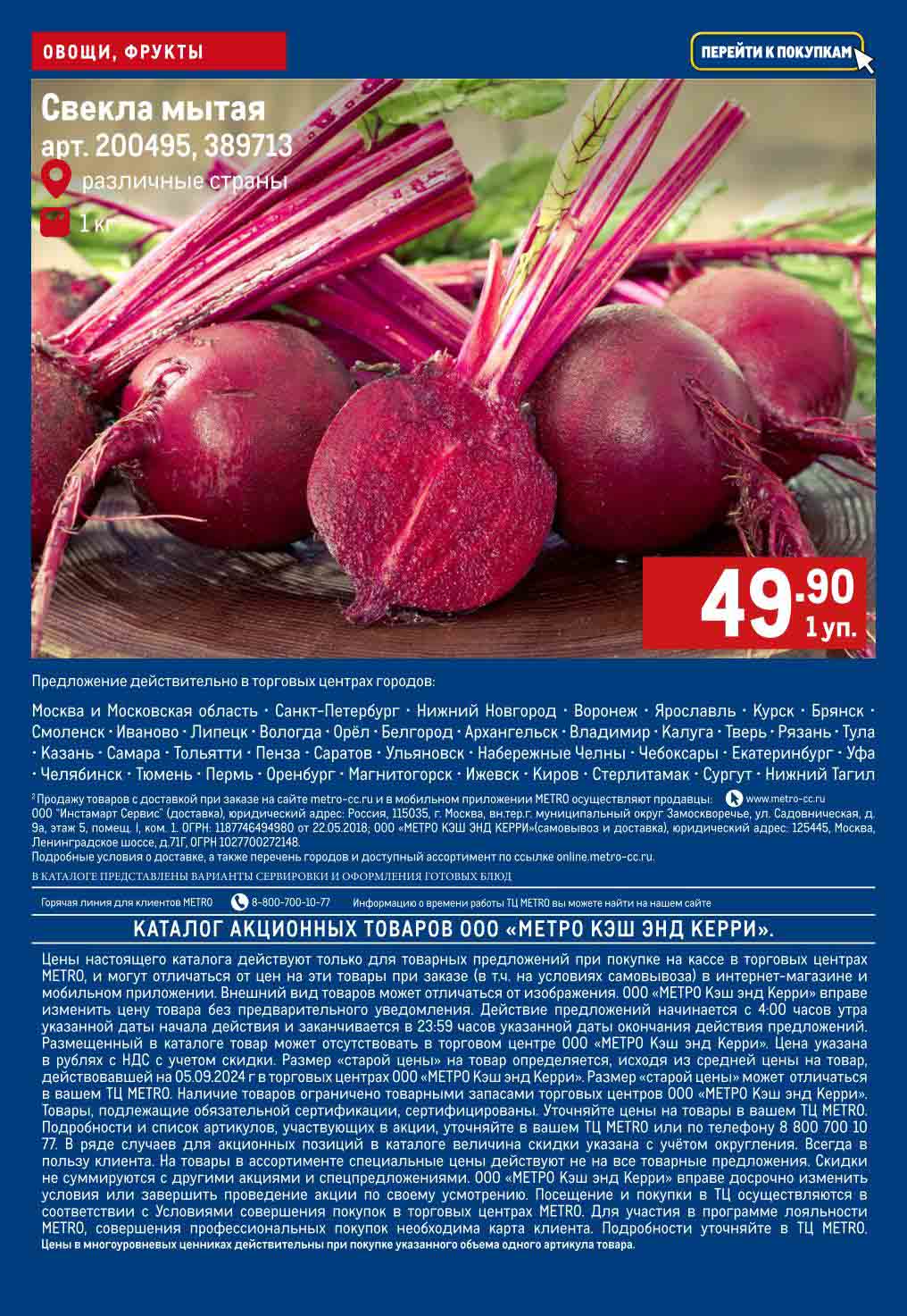 Метро акции с 19 сентября — 25 сентября 2024. Каталог Овощи и фрукты