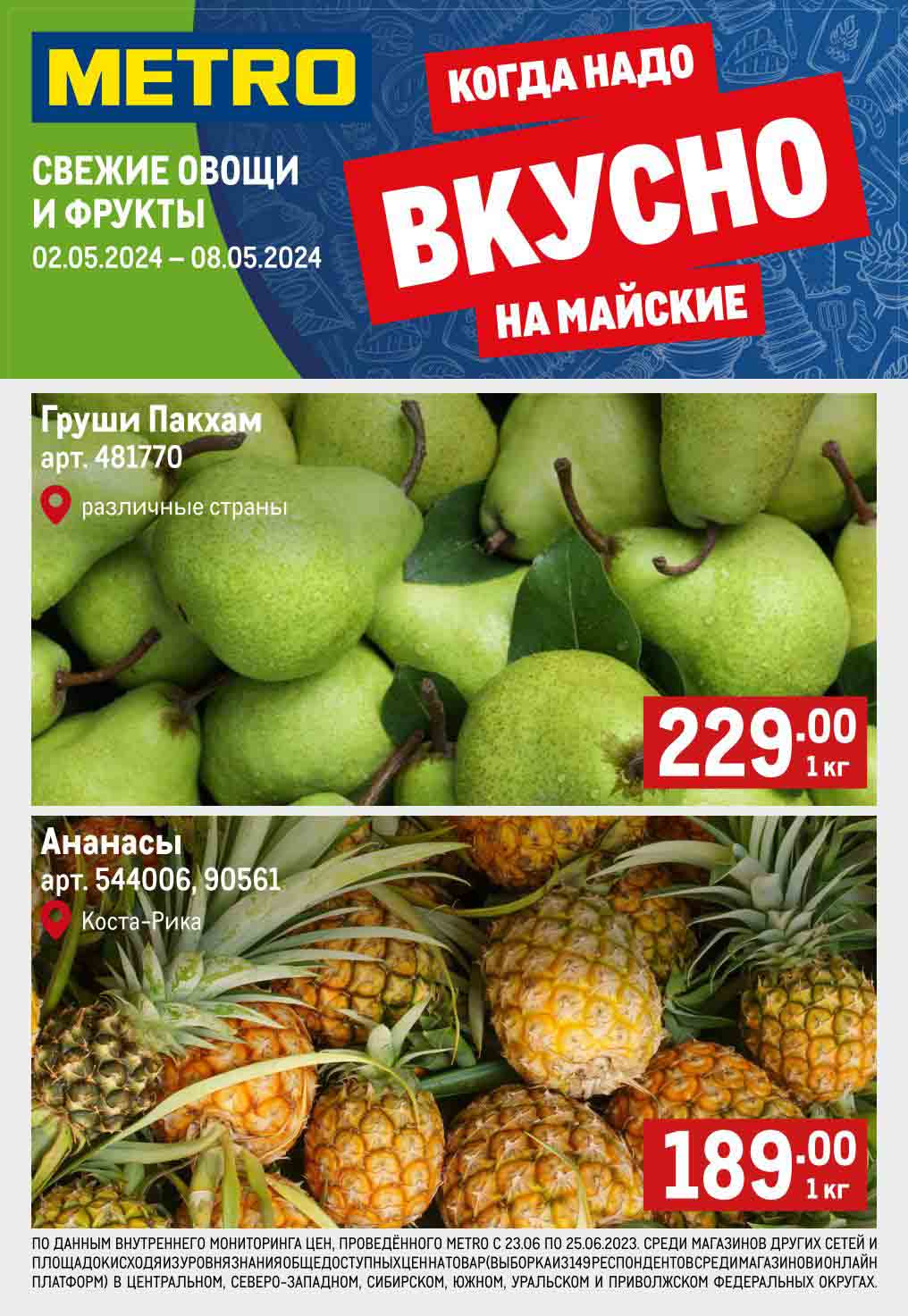 На страницах каталога Метро вы найдете все свои любимые товары, которые сейчас предлагаются в супермаркете. Не пропустите последние специальные предложения и сэкономьте на ваших покупках. В METRO представлен широкий ассортимент товаров, который отличается лучшими скидками и качеством. Цены по акции Метро действуют в городах: Москва, Балашиха, Химки, Подольск, Люберцы, Электросталь, Железнодорожный, Лобня, Ногинск и многих других населенных пунктах Московского региона.