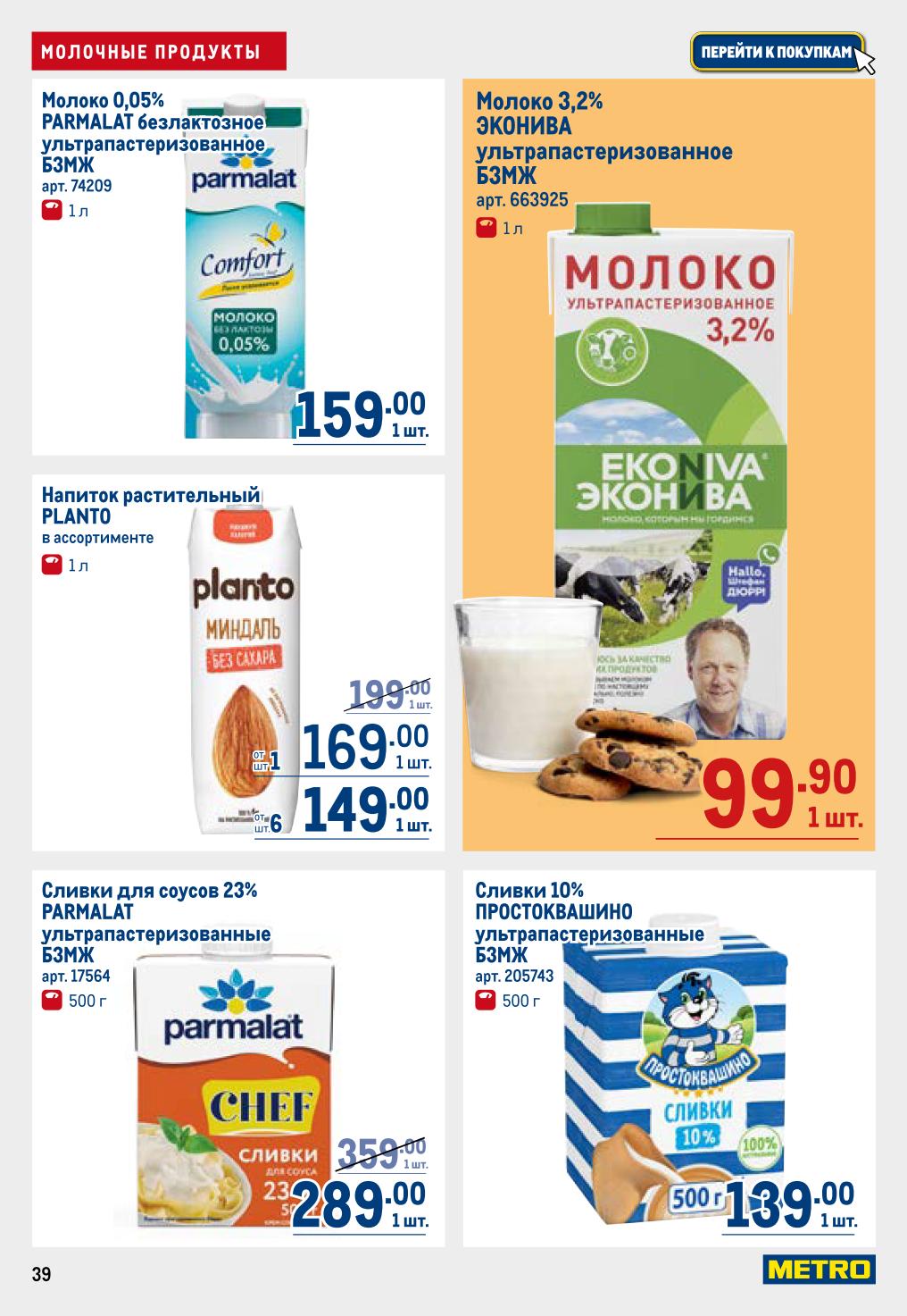 Сыр плавленый HOCHLAND (200 г, 159 ₽), Viola порционный (140 г, 119 ₽), сулугуни (200 г, 199 ₽), продукт рассольный «Сиртаки» (200 г, 109 ₽), моцарелла Galbani (125 г, 145 ₽). Молоко «Эконива» 3,2% (1 л, 99,90 ₽). Всё это пригодится для завтраков и салатов.