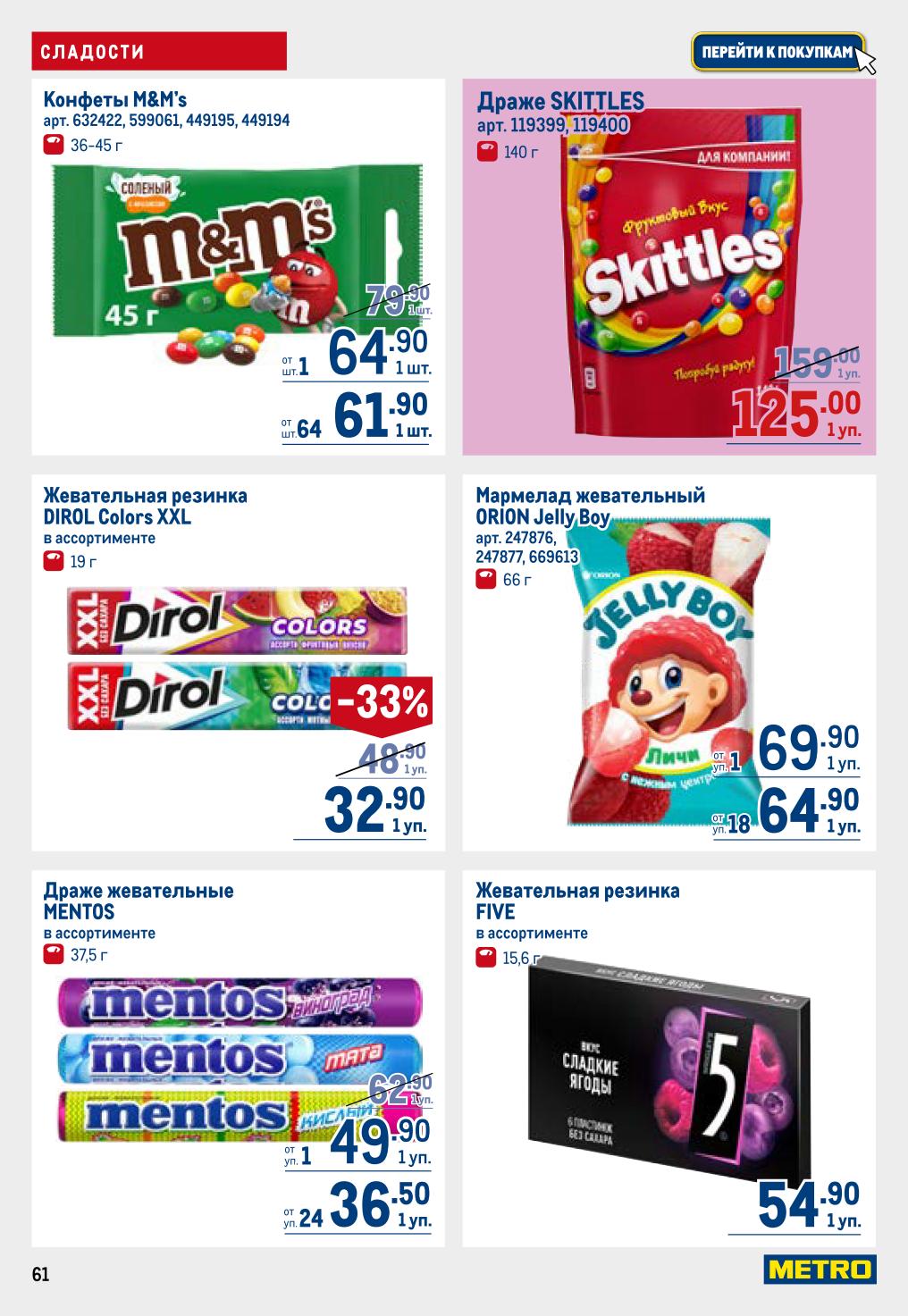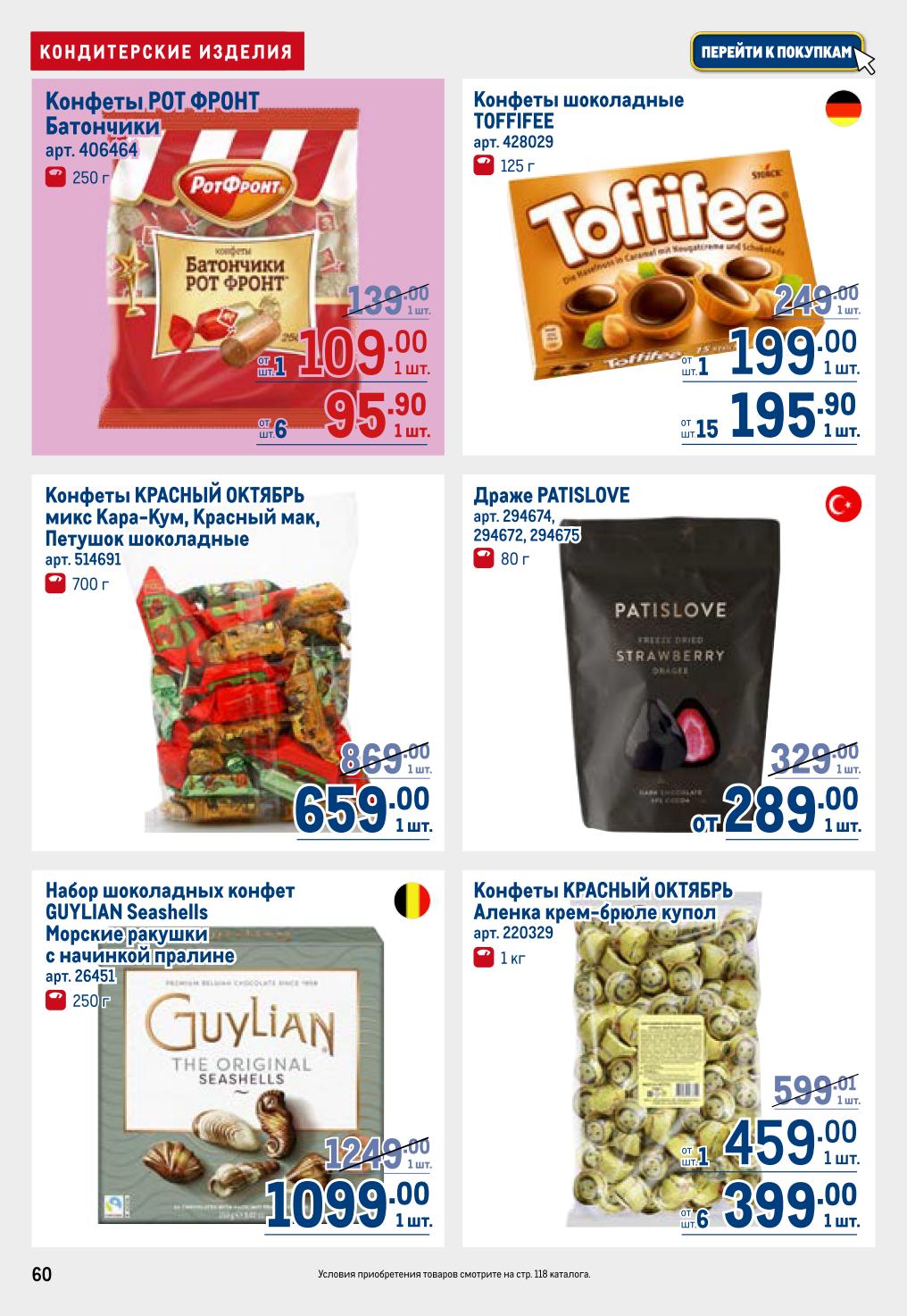 Конфеты «Рот Фронт» батончики (250 г, 109 ₽), шоколадные конфеты Toffifee (125 г, 95,90 ₽), микс конфет «Красный Октябрь» (700 г, 195,90 ₽), драже Patislove (80 г, 289 ₽), Guylian Seashells (250 г, 599 ₽), «Алёнка» крем-брюле купол (1 кг, 459 ₽). Для чаепития на даче. Вода минеральная Borjomi (0,5 л, 159 ₽), пиво Guinness (0,44 л, 209 ₽). Подробности на странице 118 каталога.