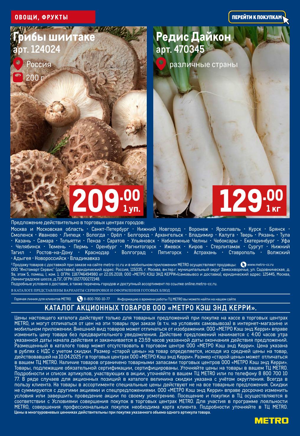 Метро акции с 24 апреля — 30 апреля 2025. Каталог Овощи и фрукты