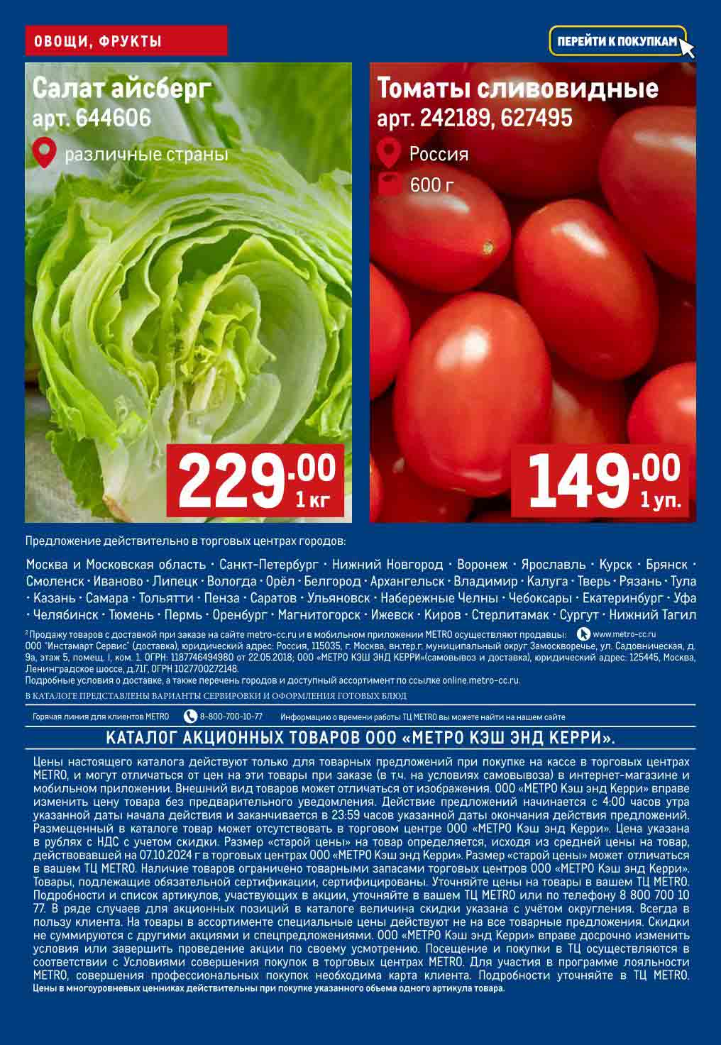 Метро акции с 24 октября — 30 октября 2024. Каталог Овощи и фрукты