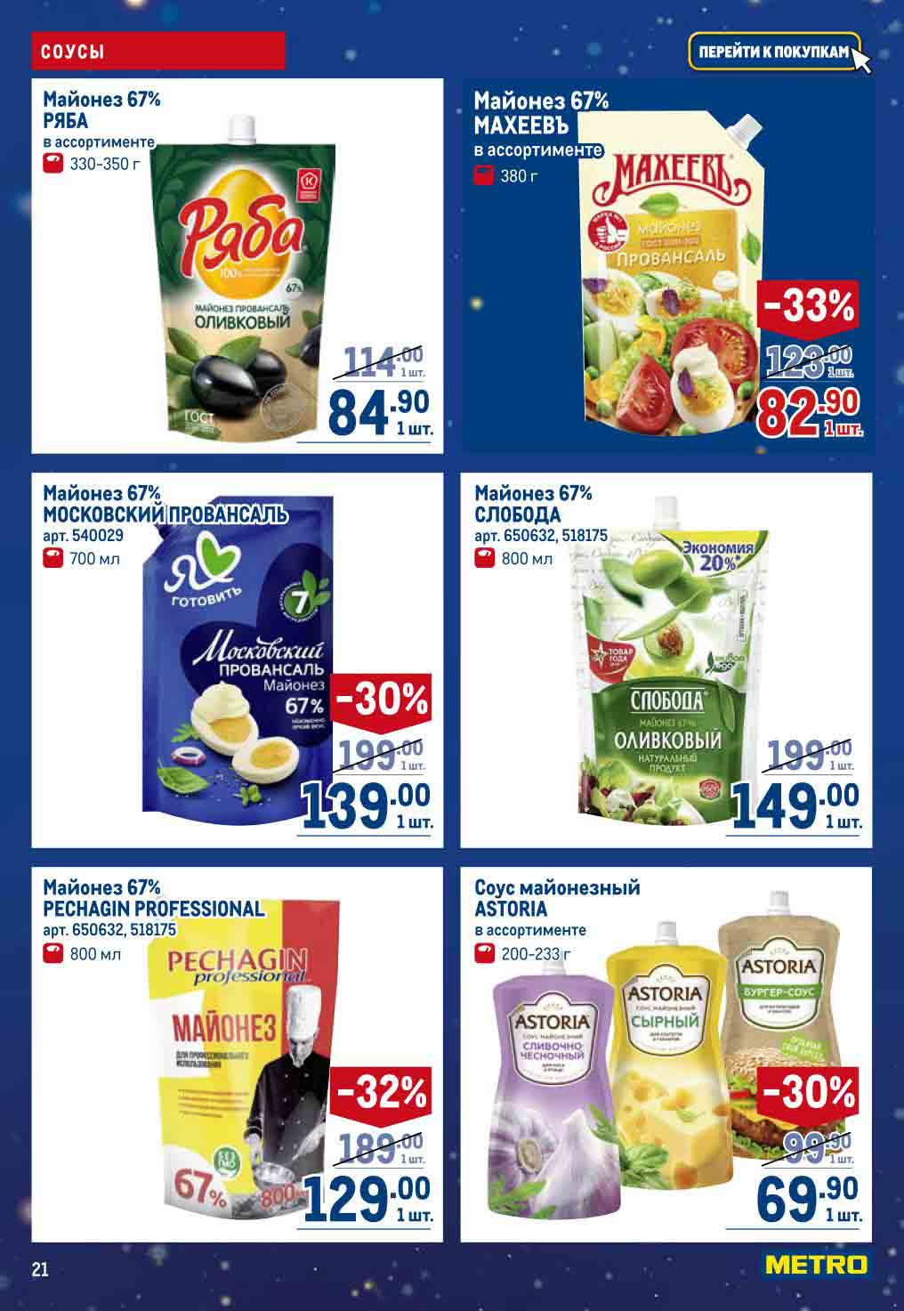 На страницах каталога Метро вы найдете все свои любимые товары, которые сейчас предлагаются в супермаркете. Не пропустите последние специальные предложения и сэкономьте на ваших покупках. В METRO представлен широкий ассортимент товаров, который отличается лучшими скидками и качеством. Цены по акции Метро действуют в городах: Москва, Балашиха, Химки, Подольск, Люберцы, Электросталь, Железнодорожный, Лобня, Ногинск и многих других населенных пунктах Московского региона.