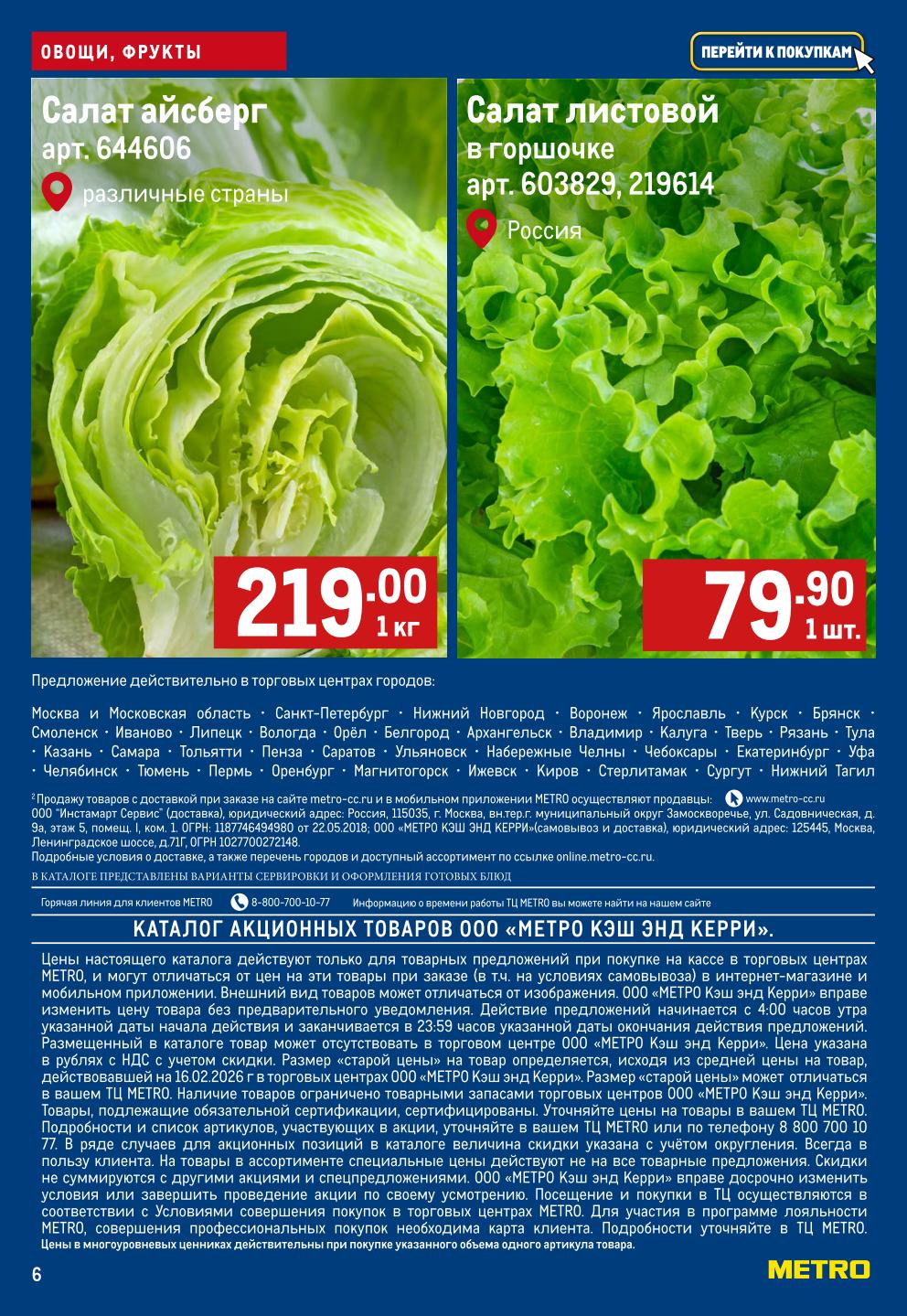 На страницах каталога Метро вы найдете все свои любимые товары, которые сейчас предлагаются в супермаркете. Не пропустите последние специальные предложения и сэкономьте на ваших покупках. В METRO представлен широкий ассортимент товаров, который отличается лучшими скидками и качеством. Цены по акции Метро действуют в городах: Москва, Балашиха, Химки, Подольск, Люберцы, Электросталь, Железнодорожный, Лобня, Ногинск и многих других населенных пунктах Московского региона.