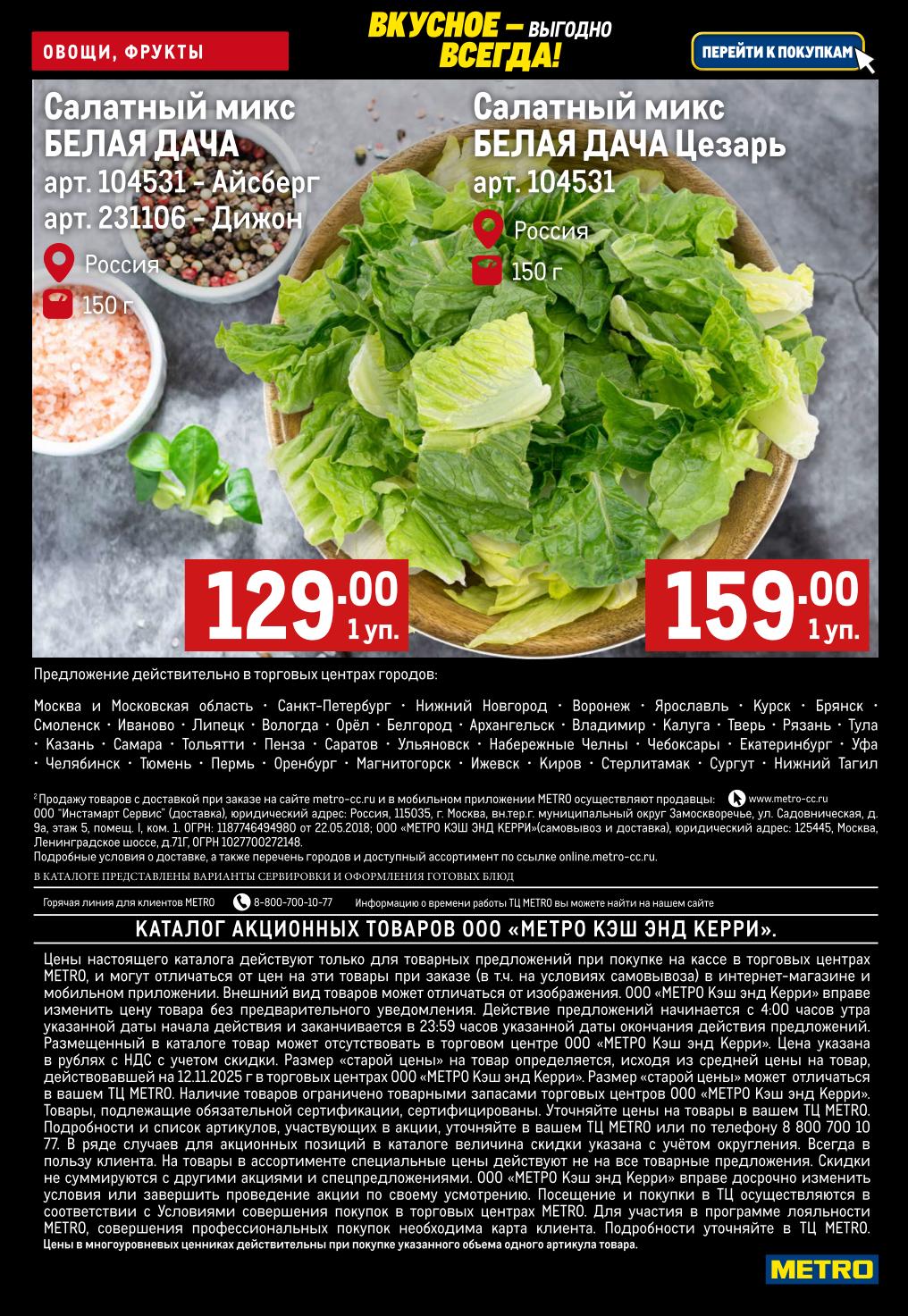На страницах каталога Метро вы найдете все свои любимые товары, которые сейчас предлагаются в супермаркете. Не пропустите последние специальные предложения и сэкономьте на ваших покупках. В METRO представлен широкий ассортимент товаров, который отличается лучшими скидками и качеством. Цены по акции Метро действуют в городах: Москва, Балашиха, Химки, Подольск, Люберцы, Электросталь, Железнодорожный, Лобня, Ногинск и многих других населенных пунктах Московского региона.