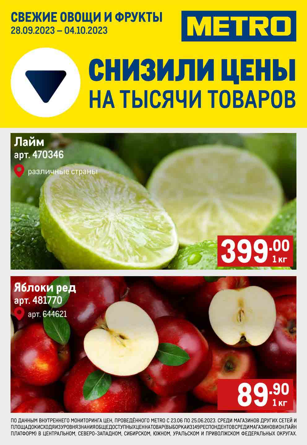 Метро акции с 28 сентября — 4 октября 2023. Каталог Овощи и фрукты