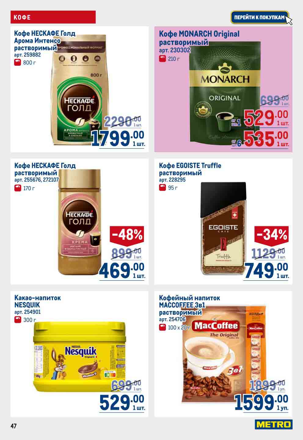 На страницах каталога Метро вы найдете все свои любимые товары, которые сейчас предлагаются в супермаркете. Не пропустите последние специальные предложения и сэкономьте на ваших покупках. В METRO представлен широкий ассортимент товаров, который отличается лучшими скидками и качеством. Цены по акции Метро действуют в городах: Москва, Балашиха, Химки, Подольск, Люберцы, Электросталь, Железнодорожный, Лобня, Ногинск и многих других населенных пунктах Московского региона.