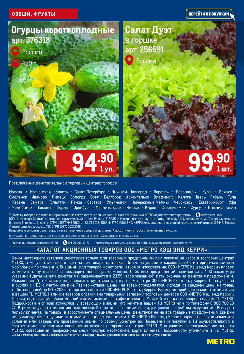 Метро акции с 31 июля — 6 августа 2025. Каталог Овощи и фрукты